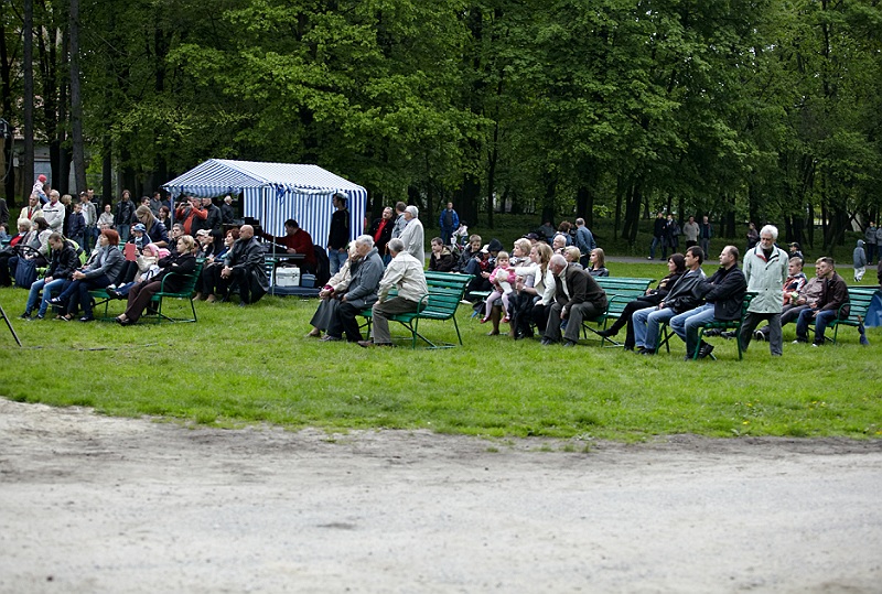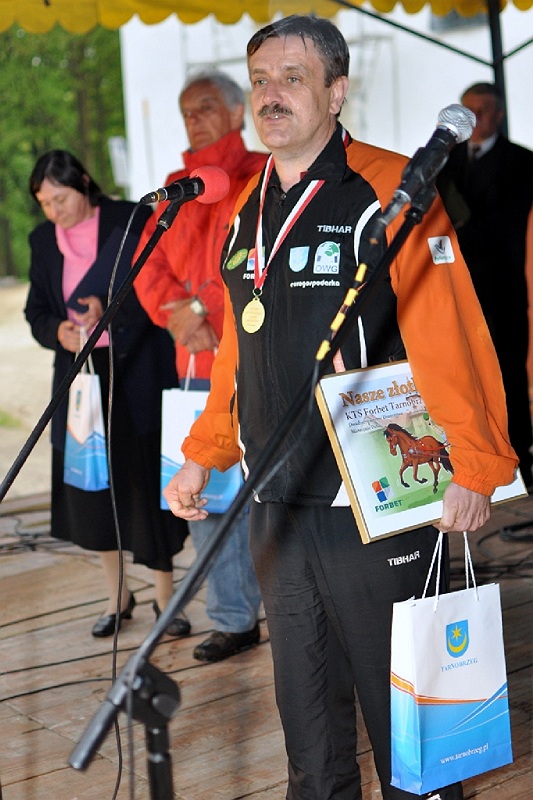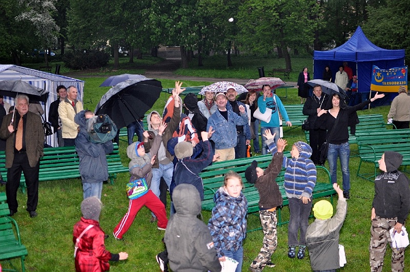 Piknik rodzinny rozpoczął koncert Strauss Ensamble, zespołu, prezentującego muzykę wiedeńską, w którego skład wchodzą głównie muzycy z Filharmonii Świętokrzyskiej. Później, piękną bryczką na teren Parku wjechały nasze złotka, czyli zawodniczki i trener Klubu Tenisa Stołowego Forbet Tarnobrzeg. – Bardzo się cieszę, że pan Prezydent tak hucznie chce świętować nasz dwudziesty tytuł Drużynowych Mistrzyń Polski. Jest to dla nas niezwykłe i bardzo miłe, w szczególności, że pomimo kiepskiej pogody, aż tylu mieszkańców chce się z nami spotkać – mówił nieco wzruszony złoty trener Zbigniew Nęcek.
