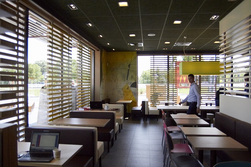 Restauracja to obiekt typu McDrive. W zależności od preferencji, goście będą mogli zjeść posiłek w klimatyzowanej sali oferującej 105 miejsc siedzących lub na świeżym powietrzu- w ogródku przeznaczonym dla 64 osób.