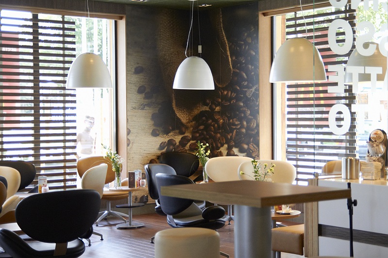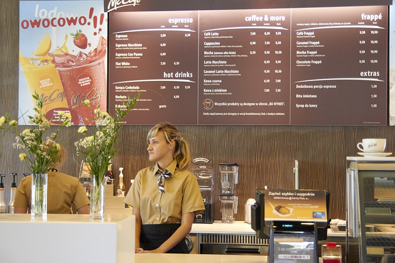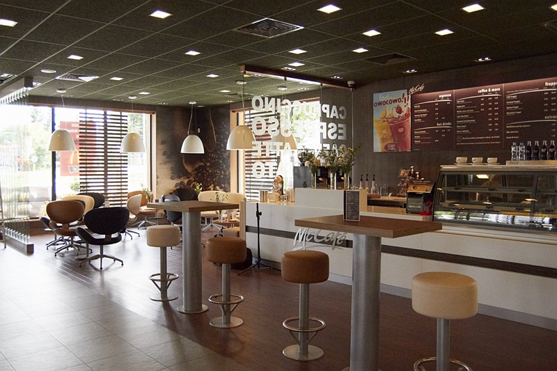 W lokalu znajduje się również McCafe- specjalnie wydzielona strefa kawiarniana, z oddzielnym kontuarem i 20 miejscami siedzącymi.