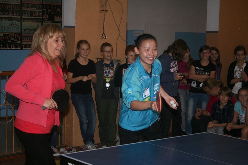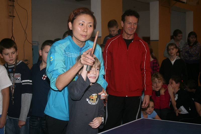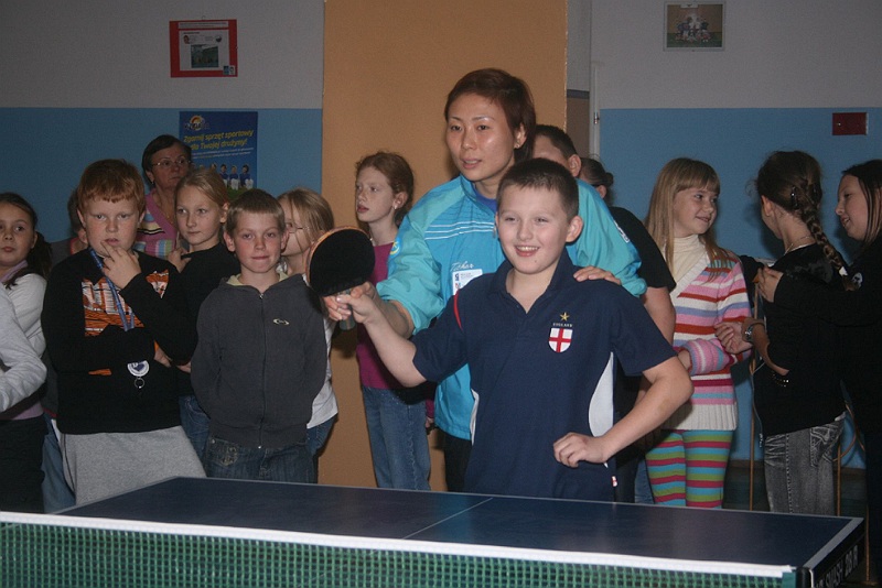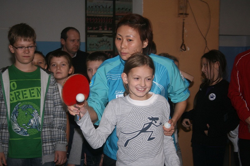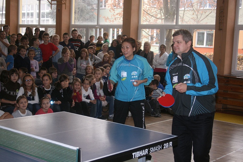 Zawodniczki KTS Zamek Tarnobrzeg – kapitan Kinga Stefańska, Xu Jie i Li Liu pod okiem trenera Zbigniewa Nęcka i Tamary Czigwincewy uczyły dziś uczniów Szkoły Podstawowej nr 3 podstaw gry w tenisa stołowego. Dzieciaki z radością przyjęły wielokrotne złote Drużynowe Mistrzynie Polski. A trener KTS-u rozglądał się za młodymi talentami.