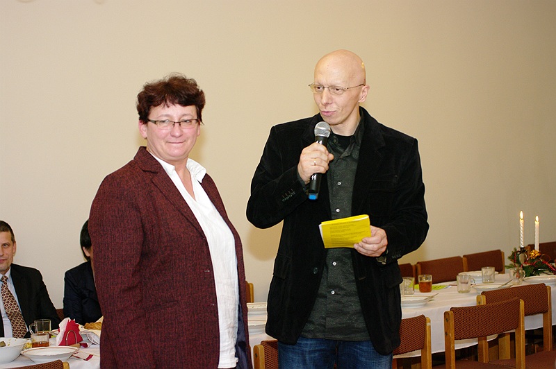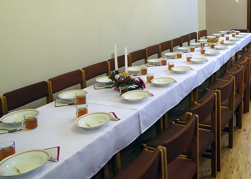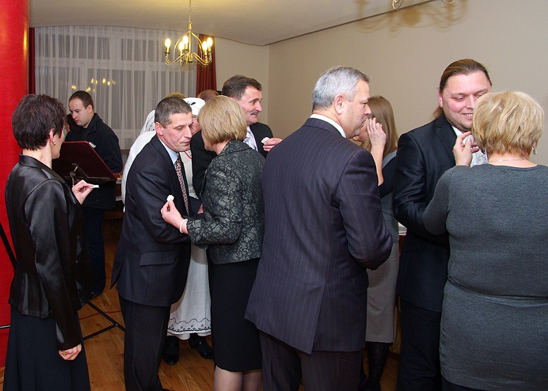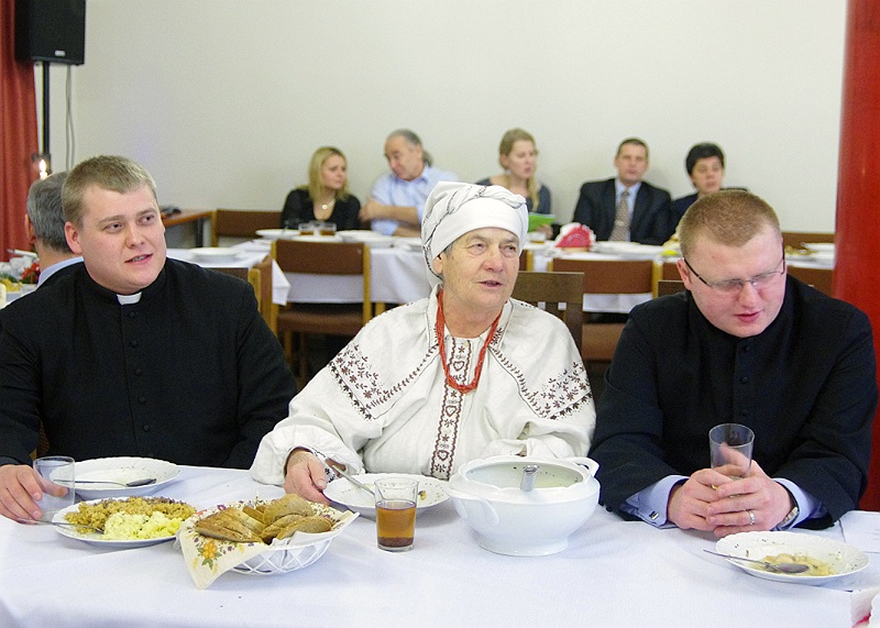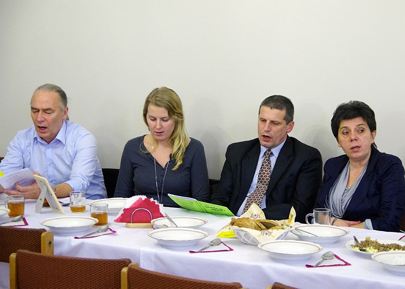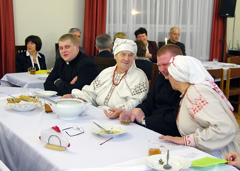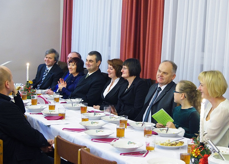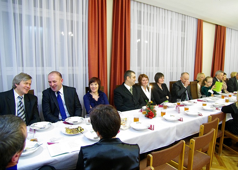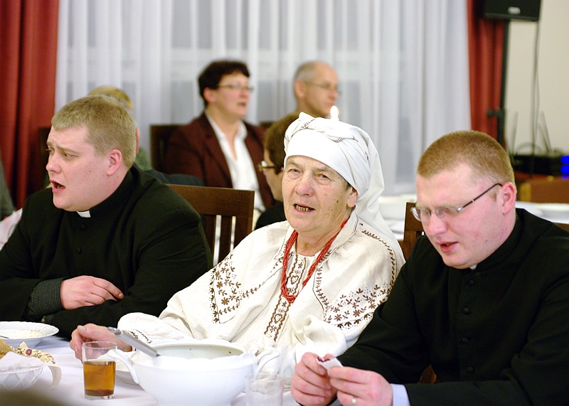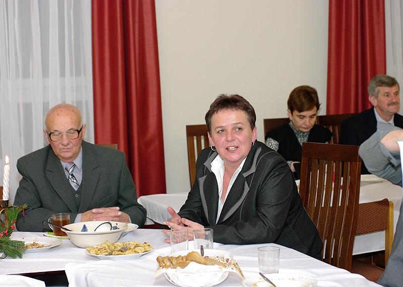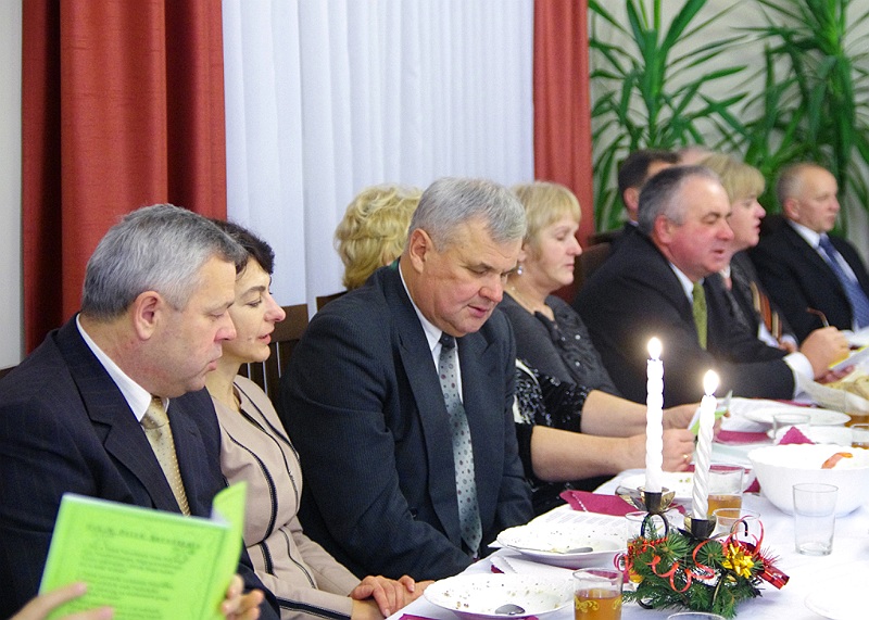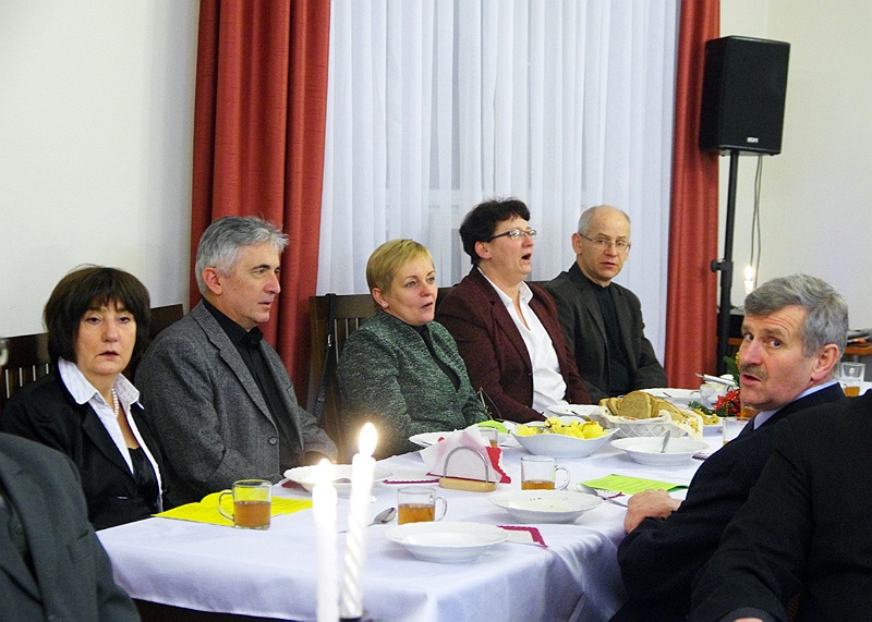 Tuż przed rozpoczęciem wieczerzy zebrani, odmówili wspólną modlitwę i łamiąc się opłatkiem, składali sobie wzajemnie życzenia świąteczne.