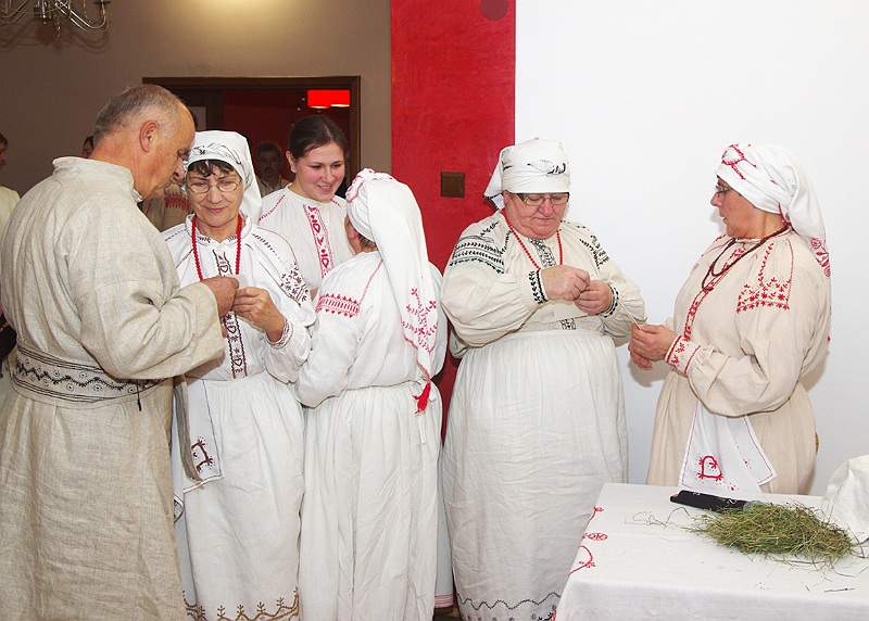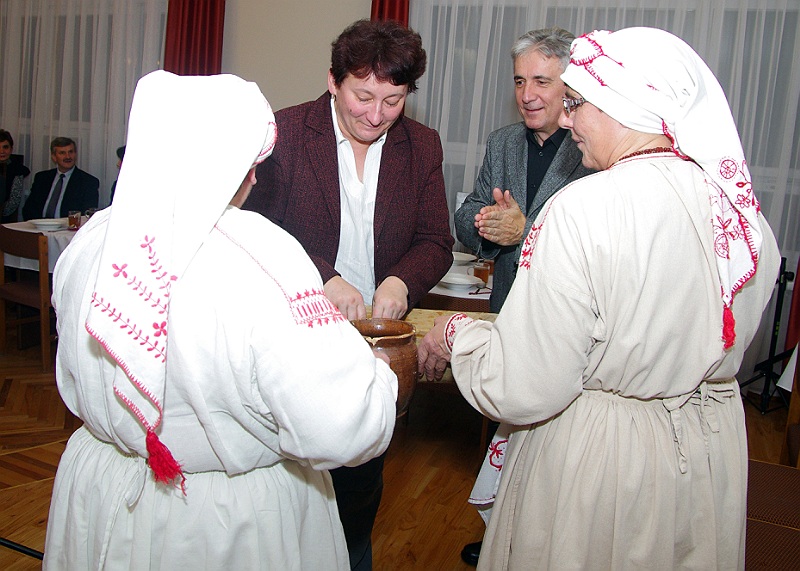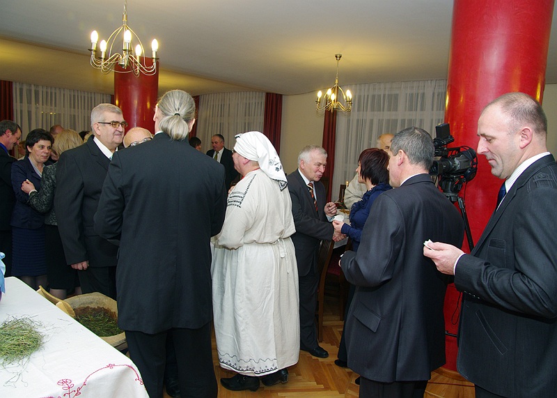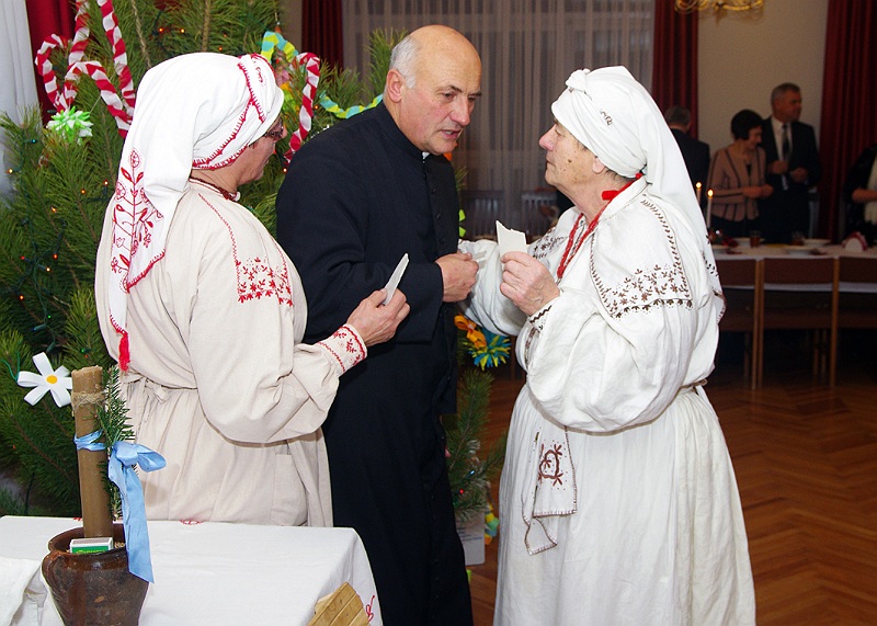 Zanim biesiadnicy zasiedli do stołu, Lasowiaczki zaprezentowały obrzędy ludowe, związane z wigilijną wieczerzą.