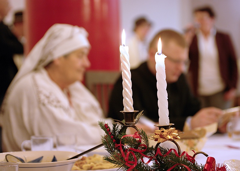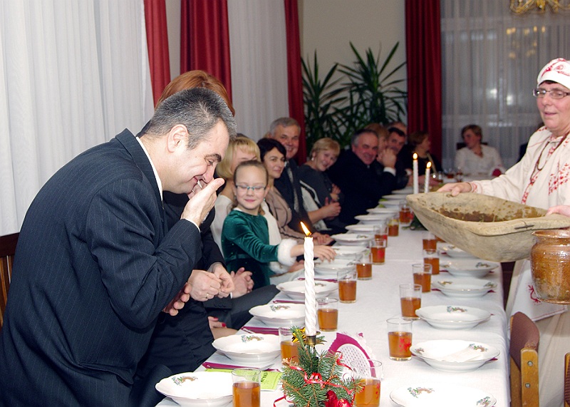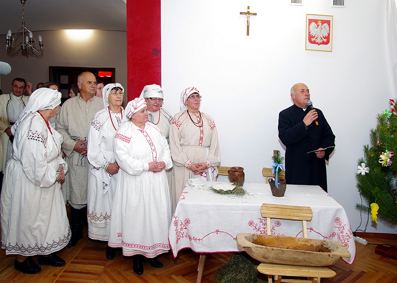 Na stół podano dwanaście potraw. Były więc: barszcz, ziemniaki z olejem, trzy rodzaje kasz, kapusta z grochem, kompot z suszu, pierogi z kapustą i grzybami oraz gołąbki. A wszystko przygotowane według najstarszych lasowiackich receptur, przekazywanych z pokolenia na pokolenie. Aby staropolskiemu obyczajowi stało się zadość wszyscy zebrani goście śpiewali kolędy… WESOŁYCH ŚWIĄT