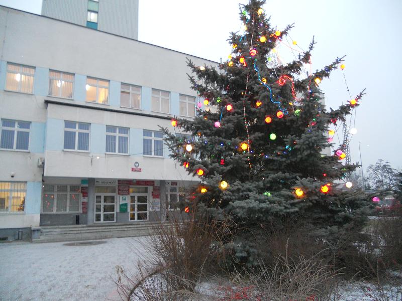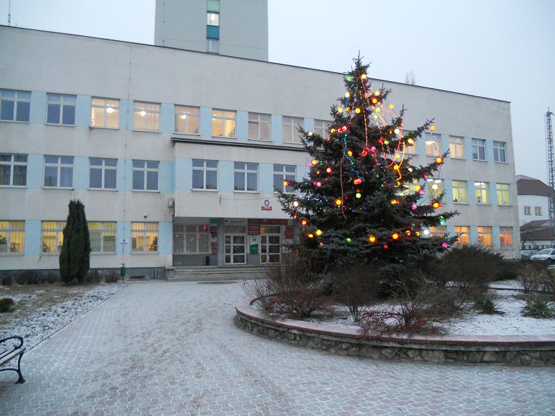 Mimo iż pogoda za oknem nie buduje świątecznego klimatu to stwarza go Starostwo Powiatowe które ozdobiło stojącą przed urzędem choinkę.