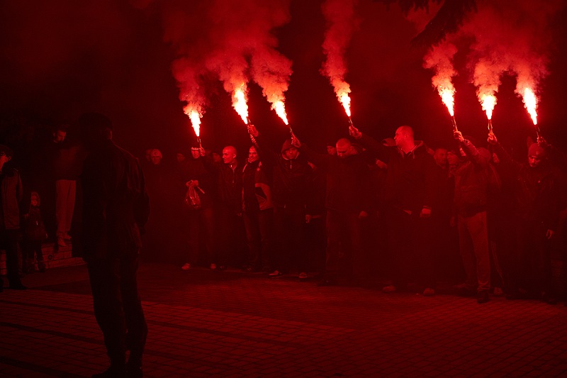 Zgromadzeni w poniedziałkowy wieczór przed pomnikiem na Placu 1000 lecia uczestnicy zapalili znicze i złożyli wiązanki kwiatów. Hołd twórcy organizacji „Odwet” i legendarnego Oddziału Partyzanckiego Armii Krajowej „Jędrusie” oddała również grupa tarnobrzeskich kibiców drużyny piłkarskiej KS Siarki. Przed pomnikiem nie zabrakło przedstawicieli tarnobrzeskiego magistratu i Policji.