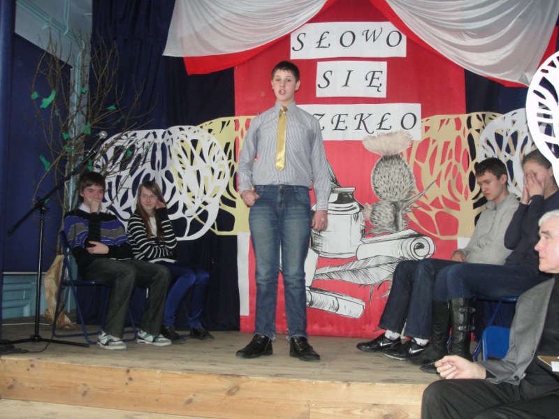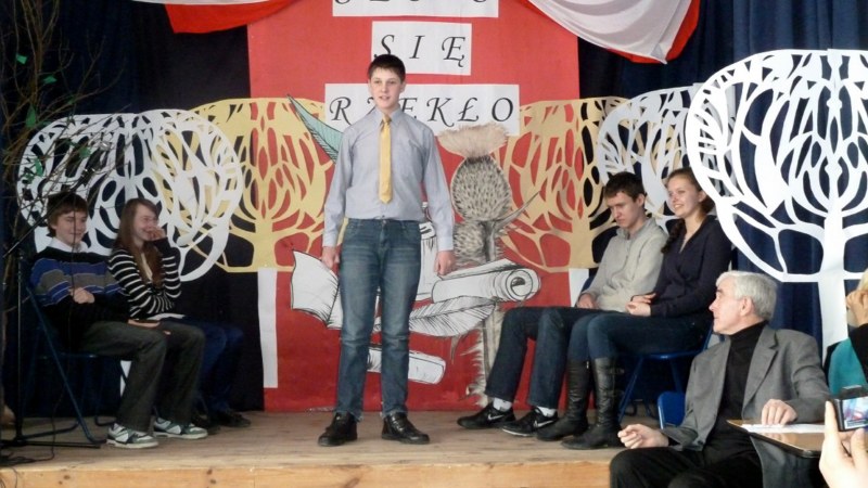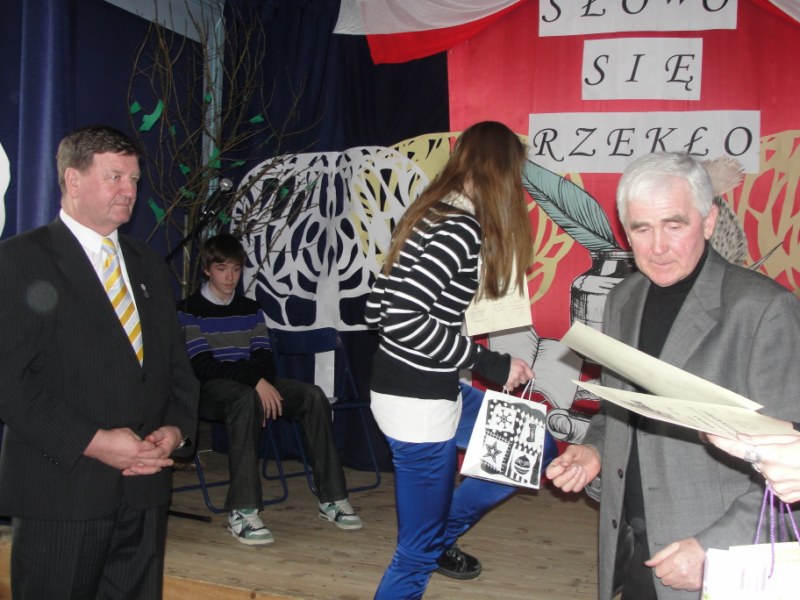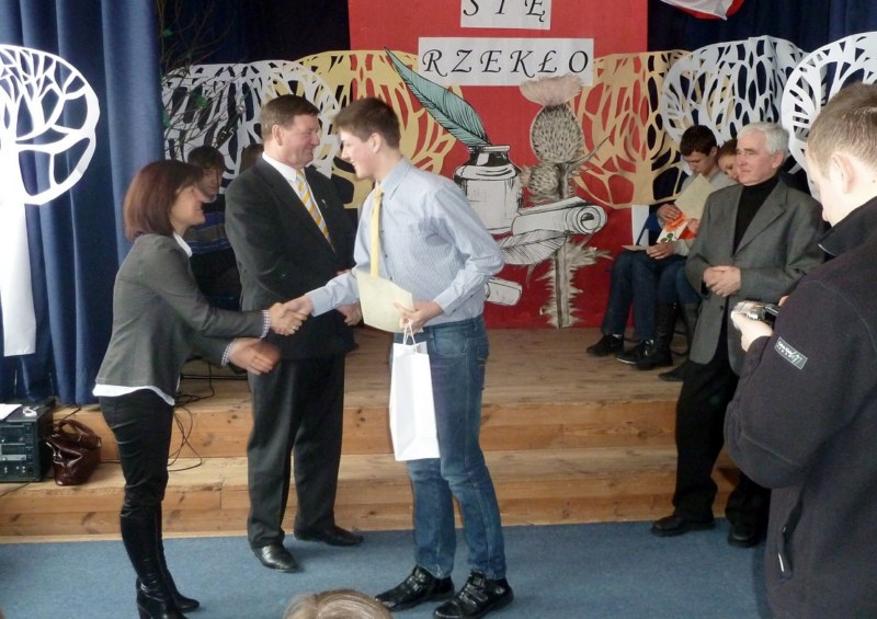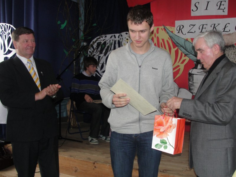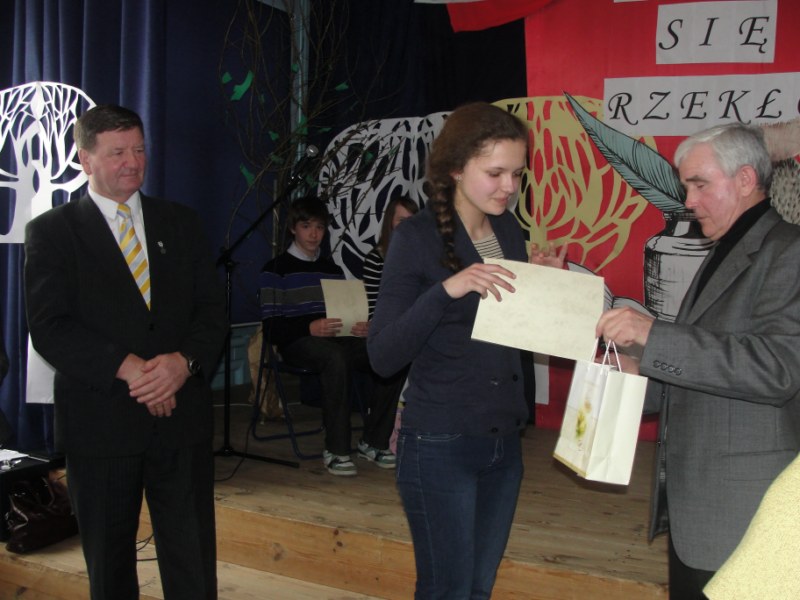 Pałkus z Gimnazjum nr 1, drugie Natalia Niezgoda z Gimnazjum nr 3, trzecie Radosław Wątroba z Gimnazjum nr 3, wyróżnienie otrzymali Katarzyna Powierża z Publicznego Katolickiego Gimnazjum i Jakub Śledź z Gimnazjum nr 1. Wszyscy uczestnicy zasłużyli na słowa uznania.