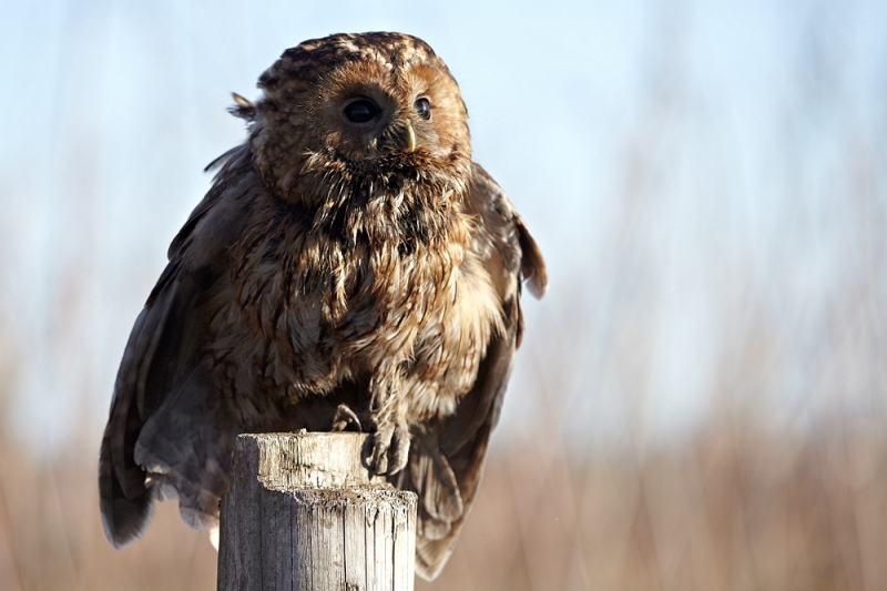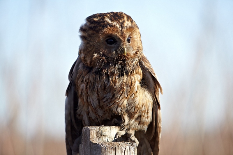 Przepiękny dorosły puszczyk leżał przy ruchliwej drodze prowadzącej do Sandomierza. Sowa najprawdopodobniej doznała urazu, w wyniku którego nie mogła wznieść się w powietrze. Puszczyk był wyraźnie osłabiony i nie próbował się bronić przed młodym człowiekiem, który go znalazł.