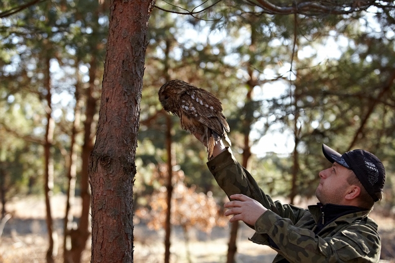 Na miejsce wypuszczenia wybrali Zwierzyniec. Wczesnym rankiem w ubiegłą sobotę Dawid, Janusz i nasz reporter wybrali miejsce i wypuścili ptaka. Puszczyk nie od razu odleciał, kiedy znalazł się już na drzewie, znieruchomiał i przez chwilę przyglądał się ludziom. Po pewnym czasie zahuczał i zniknął między drzewami.