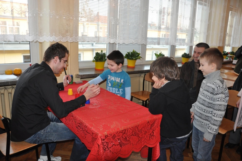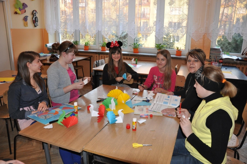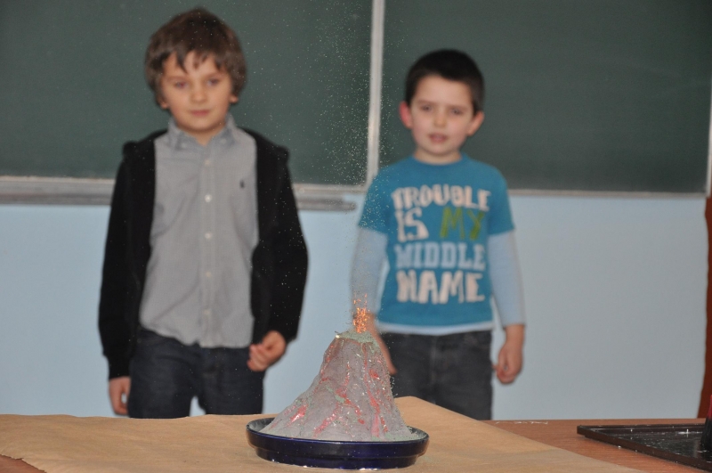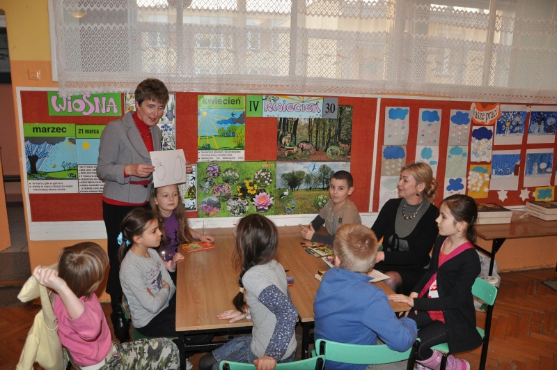 W czasie lekcji plastyki dzieci poznały zasady wykonywania origami. W pracowni przyrody przyglądały się symulacji wybuchu wulkanu, oglądały próbki pod mikroskopem oraz albumy z przeróżnymi gadami i owadami. W czasie zajęć polonistycznych maluchy odgadywały w jakie postacie z baśni i bajek wcielili się uczniowie szkoły.