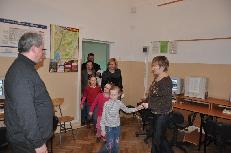 W trakcie dnia otwartego dzieci oraz ich opiekunowie przyglądali się pracy „Trójeczki”. Mieli okazję, nie tylko obejrzeć bajkowe przedstawienie przygotowane przez uczniów klas I-III, ale również zobaczyć jak wyglądają zajęcia w poszczególnych klasopracowniach.