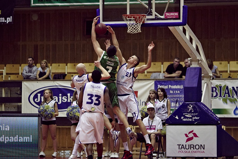 Kolejny już raz tarnobrzescy koszykarze zafundowali kibicom nerwową końcówkę ze szczęśliwym zakończeniem. Po pierwszej połowie był wprawdzie remis 44:44, jednak trzecią kwartę Jeziorowcy zagrali fatalnie. Brak aktywności w linii defensywnej sprawił, że goście bardzo łatwo zdobywali punkty z rzutów z dystansu, przez co wygrali tę część spotkania 31:21. Czwartą kwartę koszykarze Siarki Jezioro rozegrali bardzo dobrze, dominowali w zbiórkach, co było głównym elementem składającym się na zwycięstwo z liderem rozgrywek z grupie 7-14.