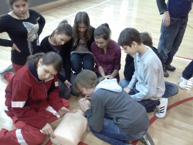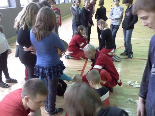 W ramach tego zadania w miesiącu lutym zostały przeprowadzone zajęcia teoretyczne i praktyczne z udzielania pierwszej pomocy dla wszystkich uczniów szkoły podstawowej i gimnazjum. Zajęcia prowadzili członkowie Grupy Ratownictwa PCK Sandomierz.