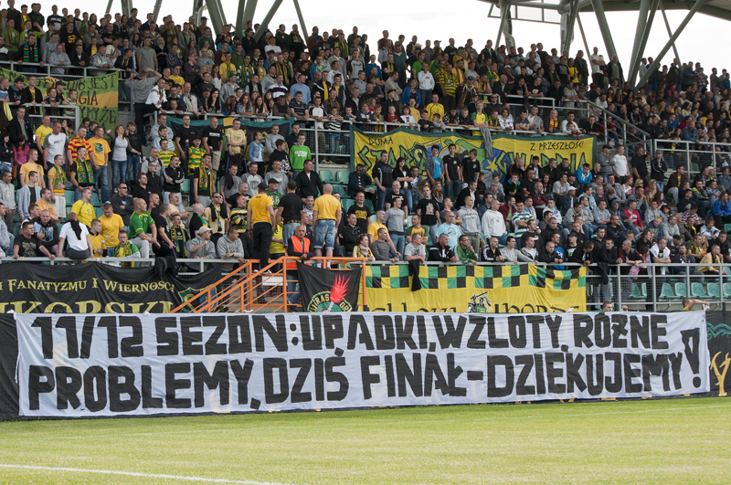 Kibice bardzo jechali po Mastalerzu a gdyby nie on to dalej budowalibyśmy drużynę do gry w II lidze… Jest jaki jest, wszyscy dobrze wiemy jaki ale z awansu cieszymy się wszyscy. Drużynę mieliśmy najlepszą ale na początku tej rundy brakowało nam szczęścia i frajersko traciliśmy punkty. Tak na prawdę to awansowaliśmy nie dzięki naszej grze tylko dzięki Izolatorowi, który urwał punkty Awii, gdyby nie oni to dziś była by kolejna stypa jak po zwycięskim meczu z Awią a nie radość.