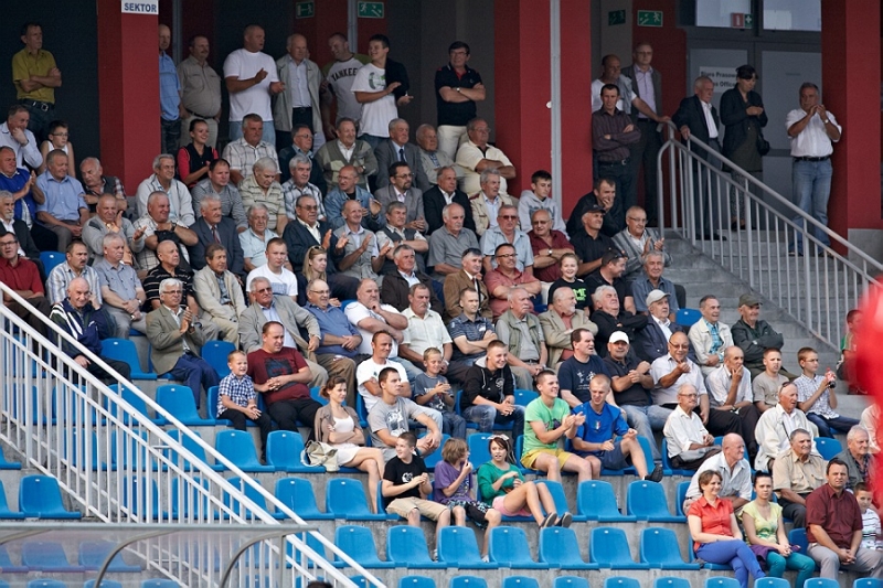 Derbowy pojedynek w Sandomierzu z pewnością mógł podobać się kibicom, obie drużyny wyszły z nastawieniem na zwycięstwo, dzięki czemu podbramkowych akcji nie brakowało. Już w 13 minucie dobrą okazję do strzelenia bramki mieli goście, po dośrodkowaniu z rzutu rożnego Gębura strzałem głową trafił w poprzeczkę. 5 minut później to Wiślacy byli o krok od zdobycia bramki jednak Pacholarz strzelił minimalnie nad poprzeczkę.