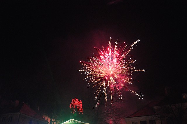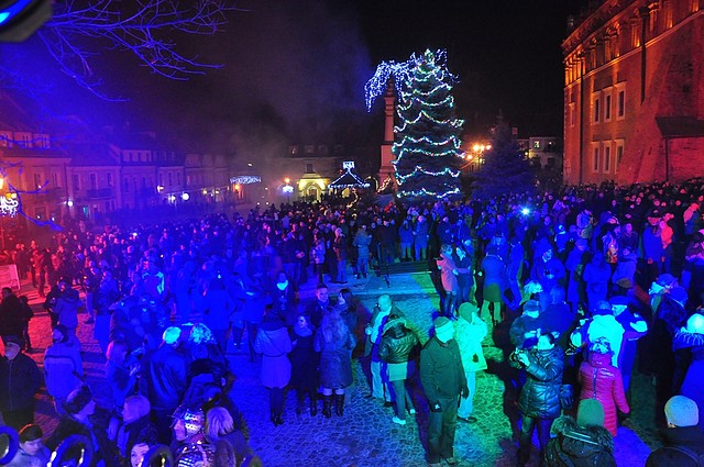 Tuż przed północą rozpoczęło się wspólne odliczanie, a Nowy Rok powitano pokazem fajerwerków oraz noworocznymi życzeniami. Tradycyjnie w Sandomierzu nie mogło obyć się bez poloneza wokół Ratusza. Chorągiew Rycerstwa Ziemi Sandomierskiej dostojnym tańcem zachęciła wszystkich do wspólnej zabawy.