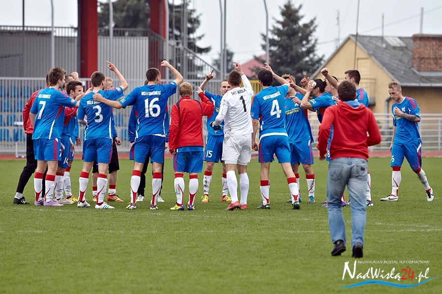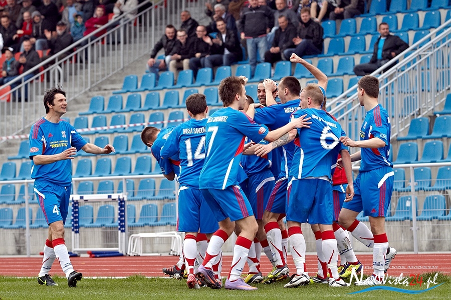 Piłkarze Wisły Sandomierz odnieśli pierwsze zwycięstwo w rundzie wiosennej. Dzięki niesamowitej końcówce spotkania pokonali drużynę Dalinu Myślenice 3:1 (0:1).