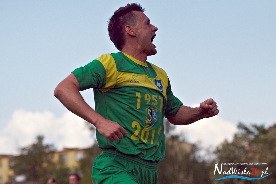 Chwilę później to szczęście uśmiechnęło się dla miejscowych po raz kolejny. Tym razem z powodu wyrównującego gola. Po szybkiej akcji i dośrodkowaniu z rzutu rożnego w wykonaniu Kowalskiego, kapitalnie uderzył głową Marcin Truszkowski nie dając żadnych szans na skuteczną interwencję bramkarzowi gości Krystianowi Stępniowskiemu.
