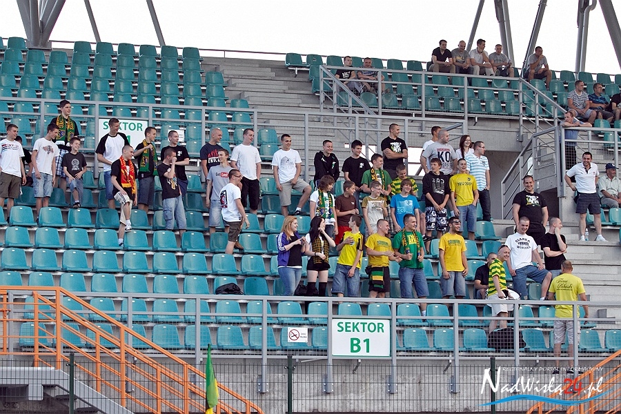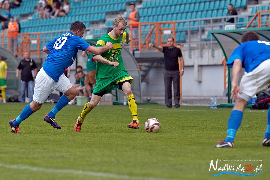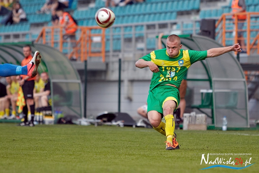 Od tego momentu tarnobrzeżanie długimi momentami panowali na boisku i bliscy byli objęcia prowadzenia w tym spotkaniu. Blisko był Jarosław Piątkowski, któremu niewiele brakło w 19 minucie by zdobyć z 35 metrów bramkę sezonu(piłka minęła okienko Stępniowskiego) i jeszcze bliżej Truszkowski, który chwilę później przestrzelił z kilku metrów po dograniu Kowalskiego. Wydaje się, że w tej akcji chyba lepiej by było gdyby Jan dogrywał na dalszy słupek do nieobstawionego Tomasza Wolana, który był w łatwiejszej sytuacji niż Truszkowski. Ten ostatni już za moment otrzymał dokładne długie podanie wprost na głowę od Bartłomieja Michalskiego, jednak trafił wprost w środek bramki gości i Stępniowski nie miał problemów ze schwytaniem piłki.