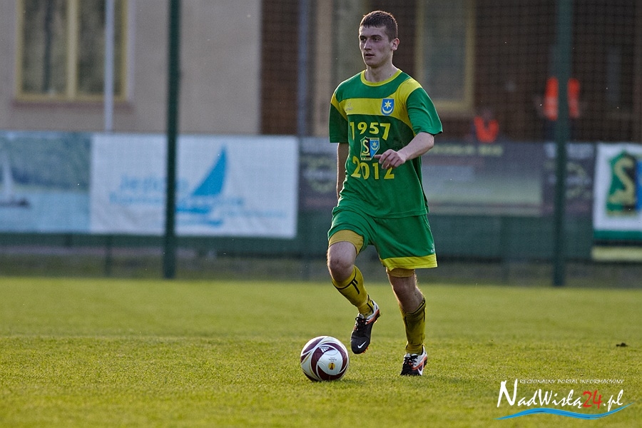 Patrząc na ligową tabelę zdecydowanego faworyta dzisiejszego meczu należało upatrywać w zespole z Niepołomic. Puszcza należy do czołówki drugoligowych rozgrywek i zdecydowanie mierzy w tym sezonie w awans do pierwszej ligi. Kibice Siarki mieli jednak powody by wierzyć w swój zespół, który na wiosnę spisuje się zdecydowanie lepiej niż na jesieni i liczyli, że uda się sprawić niespodziankę na miarę choćby ostatniej wygranej na ciężkim terenie Olimpii Elbląg. Szybko jednak, bo już w drugiej minucie zawodów goście przypomnieli, która drużyna zajmuje trzecie miejsce w tabeli. Po szybkiej akcji, błędzie w kryciu Mauhamadou Falla – Paweł Moskwik odgrywa piłkę głową w tempo do Łukasza Nowaka i ten ostatni pewnym strzałem pokonuje Kamila Beszczyńskiego. Zawodnik Siarki w powietrznym pojedynku o piłkę tak niefortunnie zderzył się z rywalem głową, że chwilę potem musiał opuścić boisko już na samym początku swojego debiutu przez tarnobrzeską publicznością.