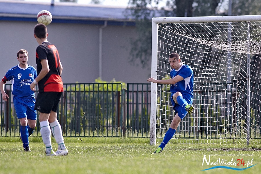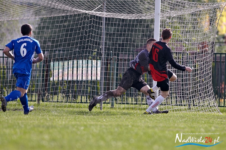 Pierwszą bramkę dla gospodarzy strzelił w 10 minucie meczu Igor Jabłoński, wykorzystując zamieszanie na polu karnym rywala. 12 minut później bramkarz gości ponownie wyciągał piłkę z siatki, tym razem po trafieniu Michała Szczepańskiego. Minęła minuta a OKS cieszył się ze zdobycia trzeciego gola, tym razem dzięki trafieniu Przemysława Stąporskiego. Kilka minut później goście mieli okazje do zdobycia bramki, jednak piłka dograna w pole karne do rozpędzonego napastnika Orła w dziwnych okolicznościach zmieniła tor lotu i zmyliła piłkarza gości. Wynik na 4:0 do przerwy ustalił Marcin Chmiel w 32 minucie.