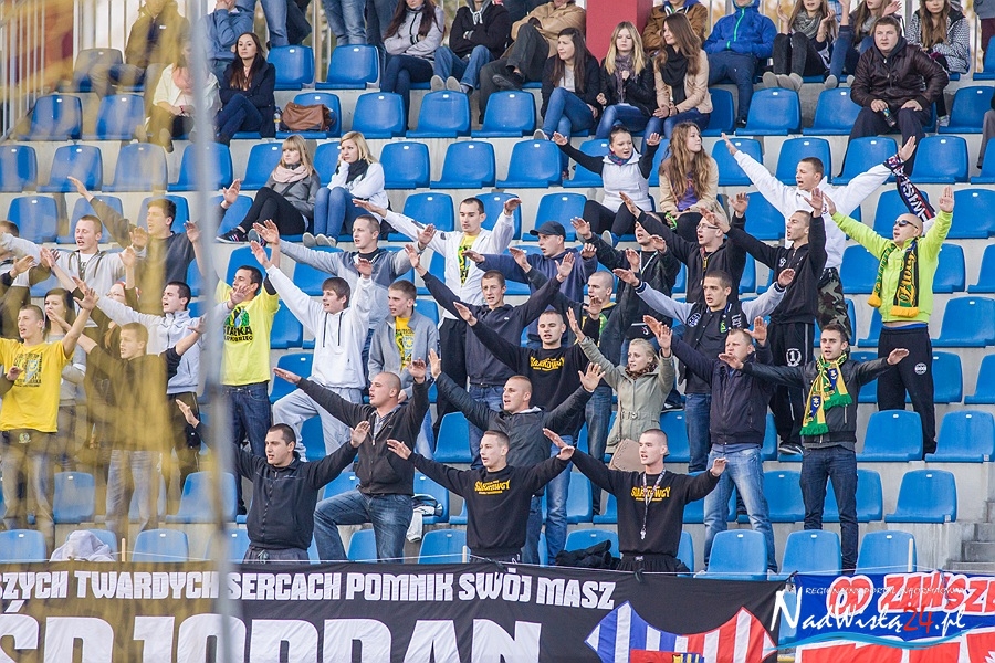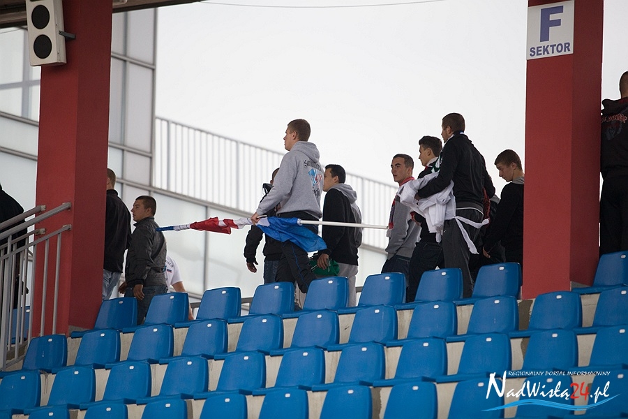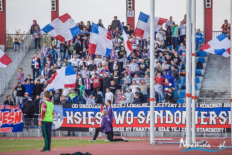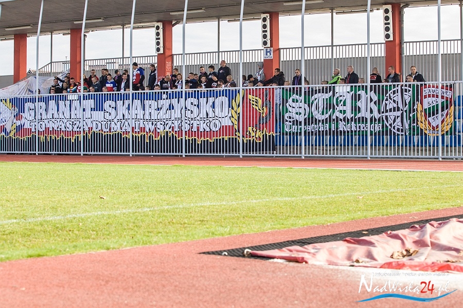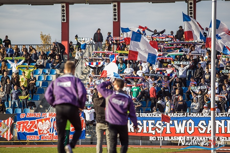 Niedzielnemu derbowemu pojedynkowi pomiędzy Wisłą Sandomierz a Granatem Skarżysko-Kamienna towarzyszył doping kibiców obu drużyn. Gospodarzy do walki zagrzewała około 200 osobowa grupa kibiców z Sandomierza wspomagana przez 50 sympatyków Siarki Tarnobrzeg. Reprezentanci Granatu Skarżysko-Kamienna stawili się w wyznaczonym sektorze w liczbie około 100 osób.
