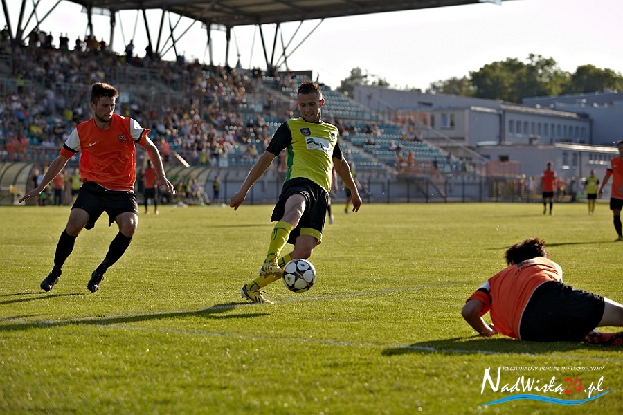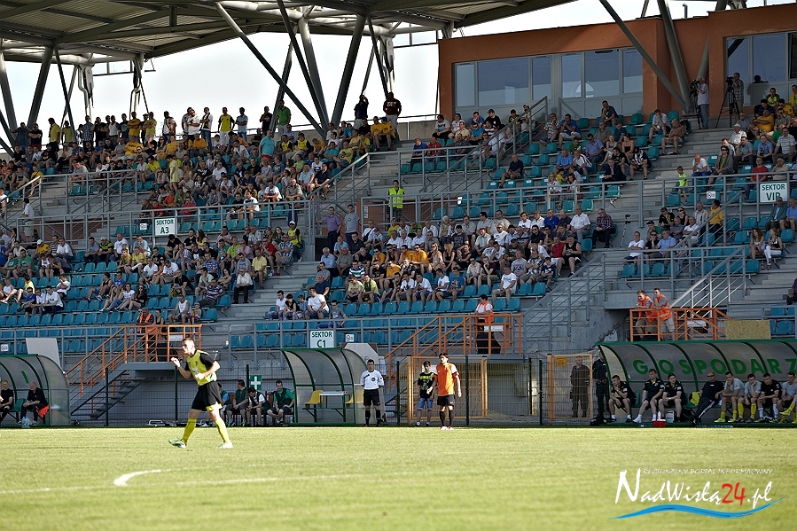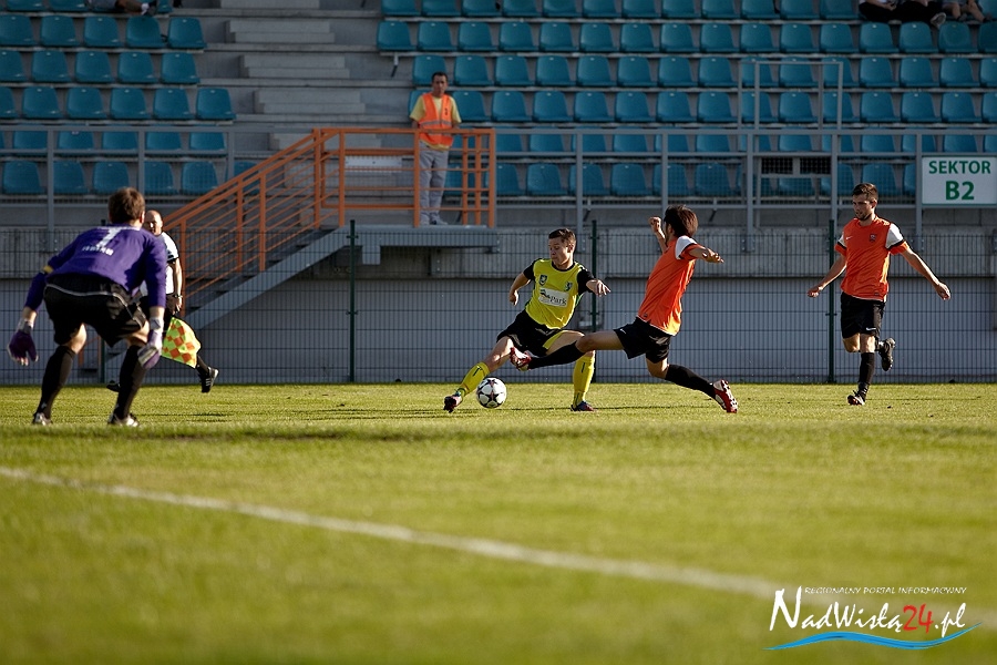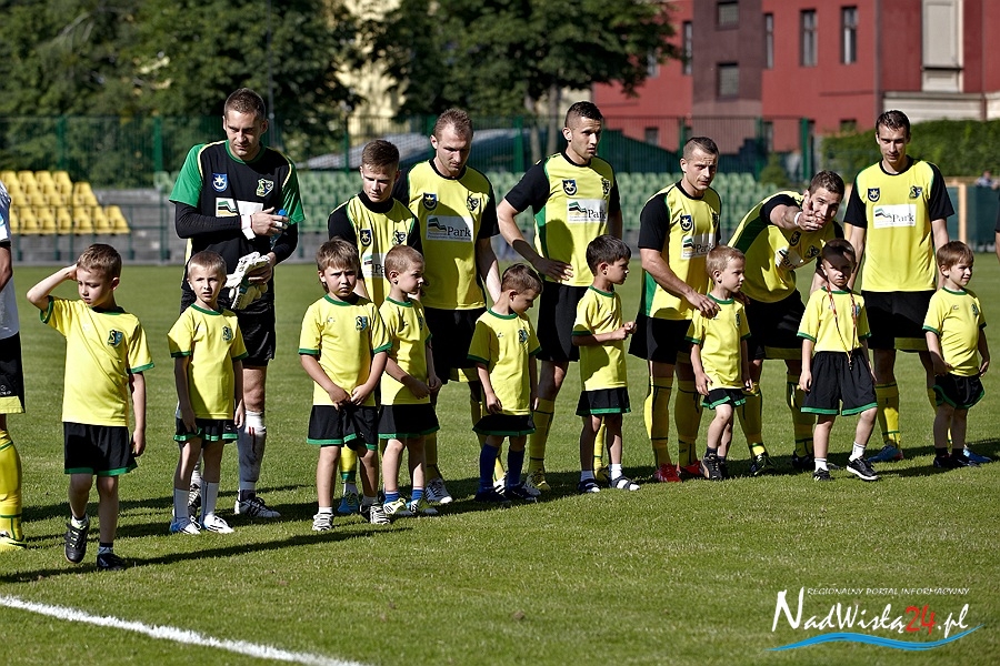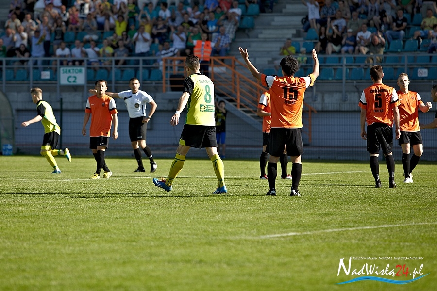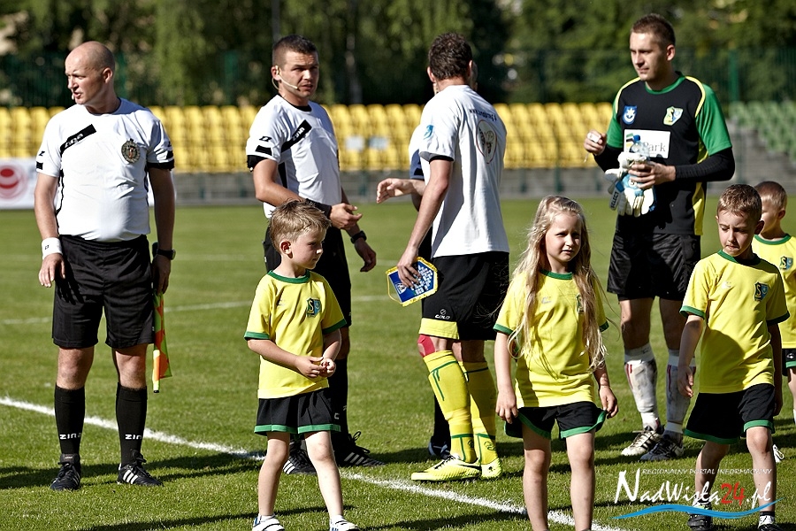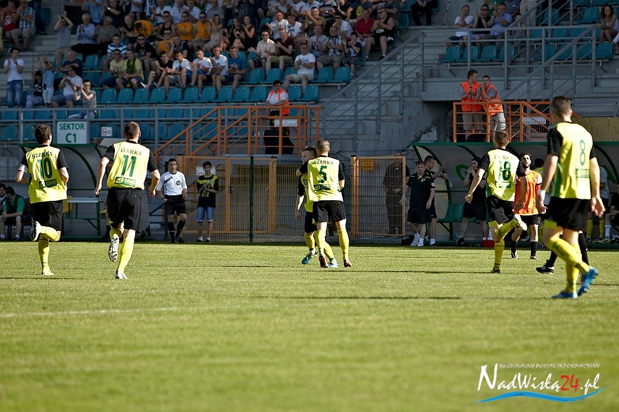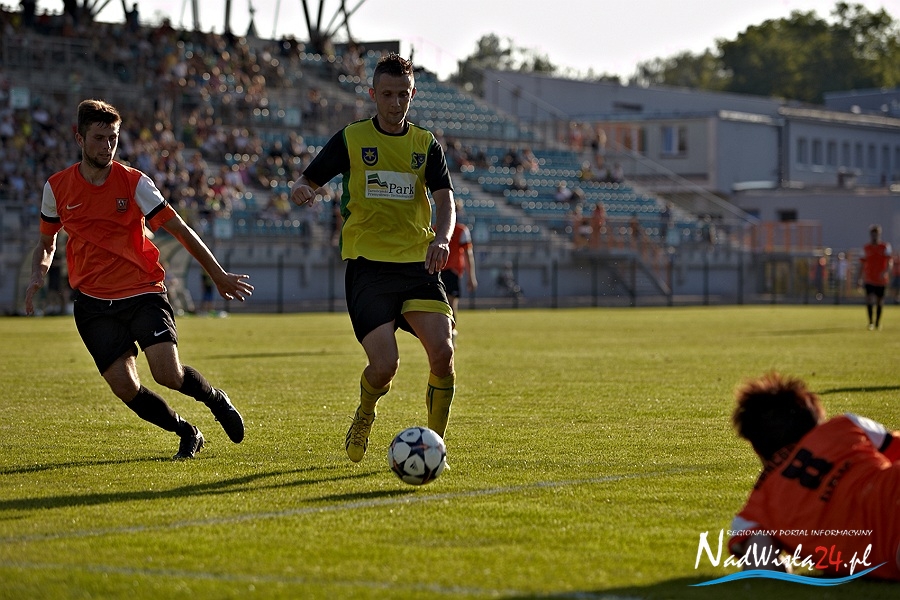 To miał być korespondencyjny pojedynek o marzenia. Kibice zgromadzeni na Stadionie Miejskim liczyli na pokonanie zespołu z Elbląga oraz na dobre wieści z Suwałk, gdzie miała wygrać rzeszowska Stal. Siarkowcy z animuszem ruszyli do ataku i już w 2 minucie zawodów objęli prowadzenie. Marcin Truszkowski dograł w tempo do Macieja Termanowskiego a ten ostatni zszedł do środka i kapitalnie uderzył. Bramkarz gości Przemysław Matłoka nawet nie drgnął.