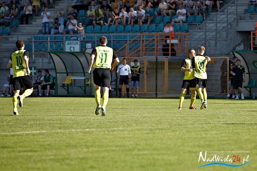 W ostatniej minucie doliczonego czasu gry gospodarze stawiają kropkę nad i.Po rzucie rożnym w wykonaniu Persony piłka trafia do Marcina Figiela, który zdobywa piękną, piątą bramkę dla swojego zespołu. Niestety ten gol – choć przedniej urody, jedynie tylko trochę osładza gorycz finału sezonu. Bo chyba jednak nawet sami tarnobrzescy piłkarze są świadomi zdecydowanie zbyt łatwo zaprzepaszczonej szansy awansu na zaplecze ekstraklasy…
