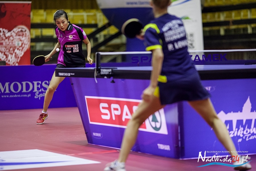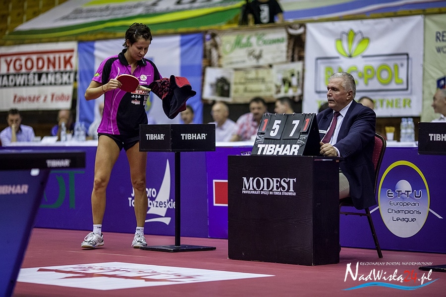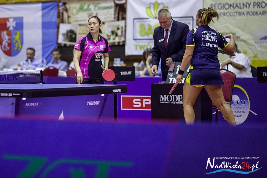 Szekszard AC przyjechał do Tarnobrzega bez Chinki Nie Wei, która nieoczekiwanie wystąpiła w letnich spotkaniach chińskiej ligi i tym samym straciła możliwość grania w LM. – Tylko z powodu Nie Wei zgłosiliśmy się do rozgrywek, teraz brakuje nam trzeciej zawodniczki, co najlepiej było widać w tym meczu – mówiła po spotkaniu Petra Lovas. To właśnie ta Węgierka okazała się niespodziewanie tak wymagającą rywalką dla Han Ying w pierwszym pojedynku wieczoru. Ying zgubiła pewność siebie, a Lovas doskonale wiedziała, czego chce przy stole. Na szczęście obóz tarnobrzeski wymyślił na tyle skuteczną taktykę, że w końcu zawodniczka gości została spacyfikowana.