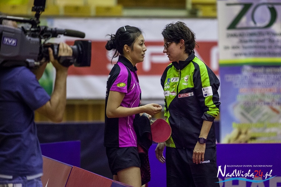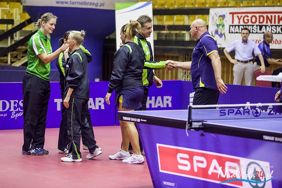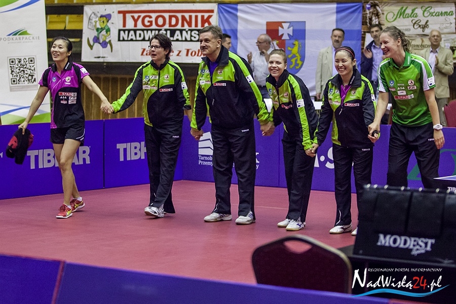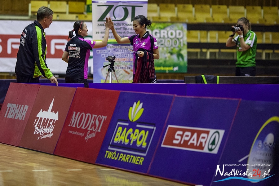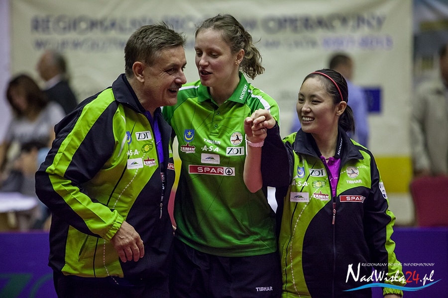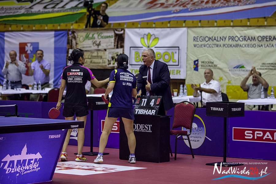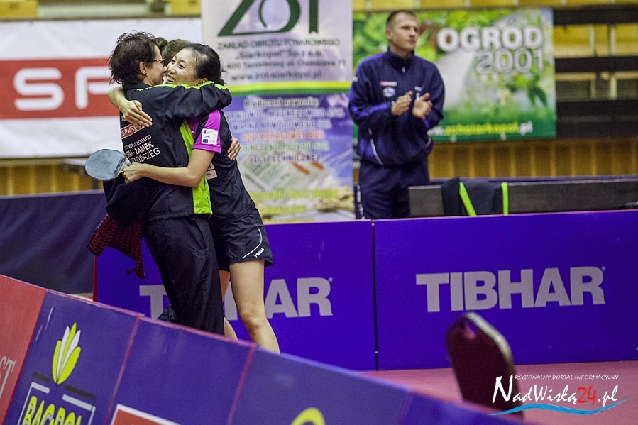 Decydujący mecz stoczyły indywidualna i drużynowa mistrzyni Starego Kontynentu z 2013 roku. – Takiej kumulacji aktualnie najlepszych zawodniczek Europy w Tarnobrzegu jeszcze nie było – uśmiechał się Zbigniew Nęcek. Han Ying znalazła jednak bardzo skuteczną drogę do pokonania zawodniczki węgierskiego klubu i w pięknym stylu przypieczętowała pierwsze zwycięstwo KTS-u w nowym sezonie. – Brawa należą się całemu zespołowi, przede wszystkim za to, że wykorzystał szansę. Kiedy zobaczyliśmy skład Szekszard, to było jasne, że jesteśmy faworytem, natomiast ktoś jeszcze musiał wyjść do stołu i to potwierdzić. Dlatego dobrze, że nikt nie zadzierał nosa przed spotkaniem, tylko wszystkie tarnobrzeżanki wyszły i zrobiły swoje. Cieszę się z powrotu Li Qian, ale również jestem zbudowany tym, co pokazały Ying i Renata – podsumował tarnobrzeski szkoleniowiec.