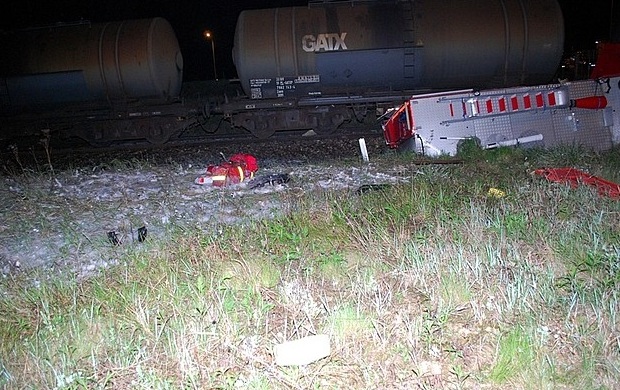 Cztery osoby zostały ranne w wypadku, do którego doszło na niestrzeżonym przejeździe kolejowym w podtarnobrzeskim Chmielowie. Wóz strażacki jadący do pożaru wjechał pod pociąg towarowy relacji Trzebinia – Klemensów.
