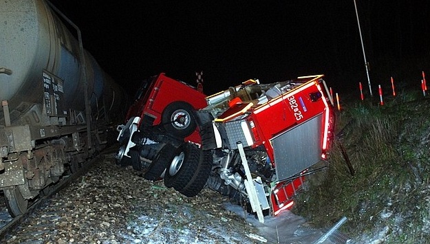 Wczoraj po godzinie 22, dyżurny Policji został powiadomiony o wypadku, do którego doszło na przejeździe kolejowym w Chmielowie (gmina Nowa Dęba). Ze wstępnych ustaleń policjantów, którzy pracowali na miejscu wynika, że wóz Państwowej Straży Pożarnej jechał do pożaru. Pojazdem uprzywilejowanym marki Renault kierował 44–letni strażak z jednostki w Nowej Dębie. Przejeżdżając przez niestrzeżony przejazd kolejowy zderzył się z pociągiem towarowym wiozącym puste cysterny po paliwie. W wypadku ranne zostały cztery osoby. Do szpitala trafili dwaj maszyniści w wieku 52 i 54 lat oraz dwaj strażacy w wieku 40 i 44 lat.