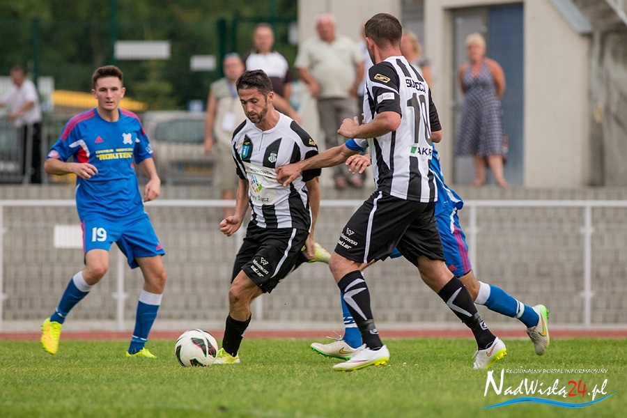 Sandecja: 1. Marek Kozioł – 14. Michał Szeliga, 5. Dawid Szufryn, 4. Przemysław Szarek, 24. Kamil Słaby – 37. Bartłomiej Dudzic, 7. Grzegorz Baran, 11. Matej Náther (74, 22. Mateusz Bartków), 10. Łukasz Nowak (58, 20. Adrian Danek), 8. Maciej Małkowski – 9. Arkadiusz Aleksander (46, 21. Bartosz Sobotka)