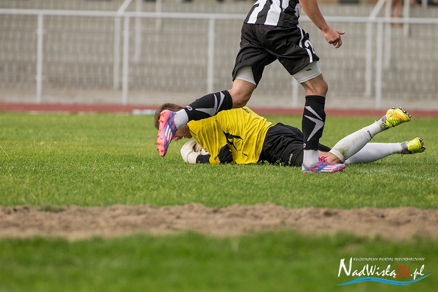 W 33. minucie instynktem popisał się Stanisław Wierzgacz, który z wielkim trudem wybił futbolówkę dośrodkowaną przez Michała Szeligę. W 42. minucie Kamil Słaby posłał piłkę w pole karne gospodarzy, ale ponownie świetnie spisał się Wierzgacz.