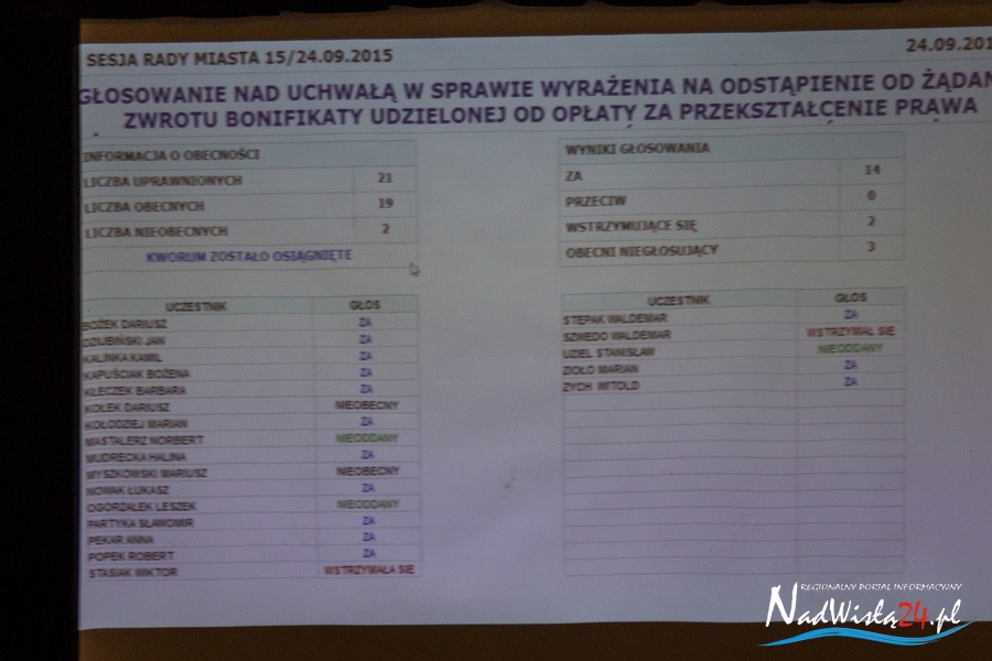 Za pomocą pilota radni nie tylko oddają swój głos, ale również potwierdzają swoją obecność oraz zgłaszają udział w dyskusji. Wyniki głosowania poszczególnych radnych wyświetlane są na tablicy.
