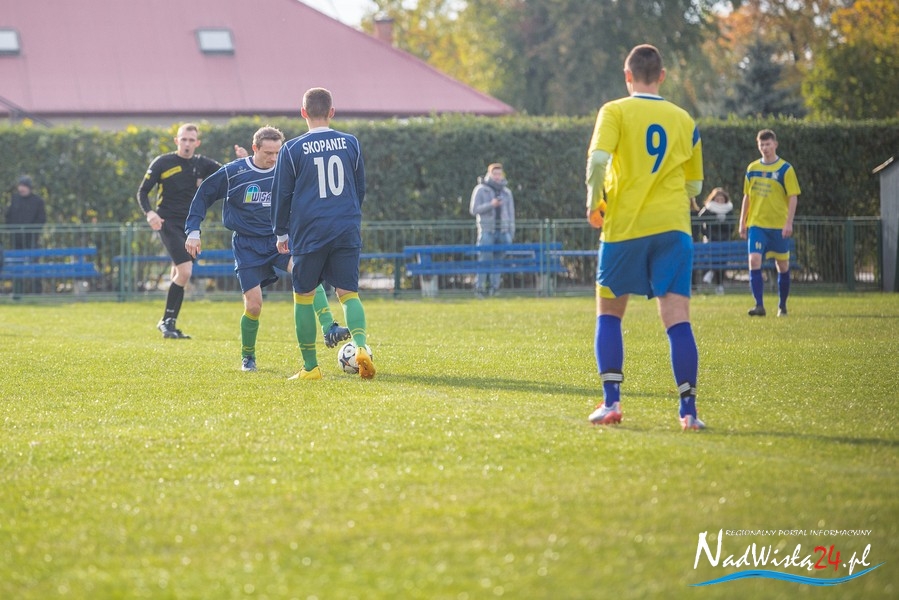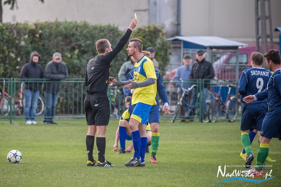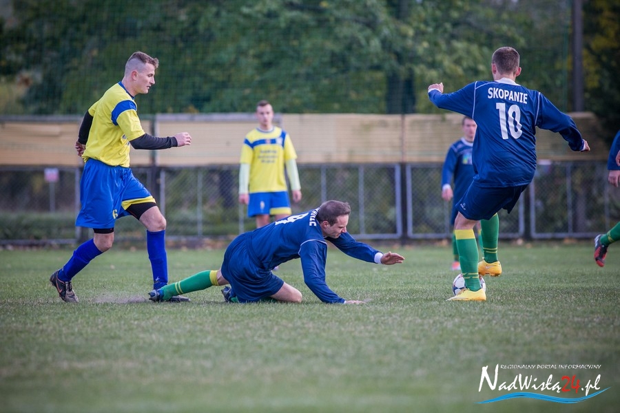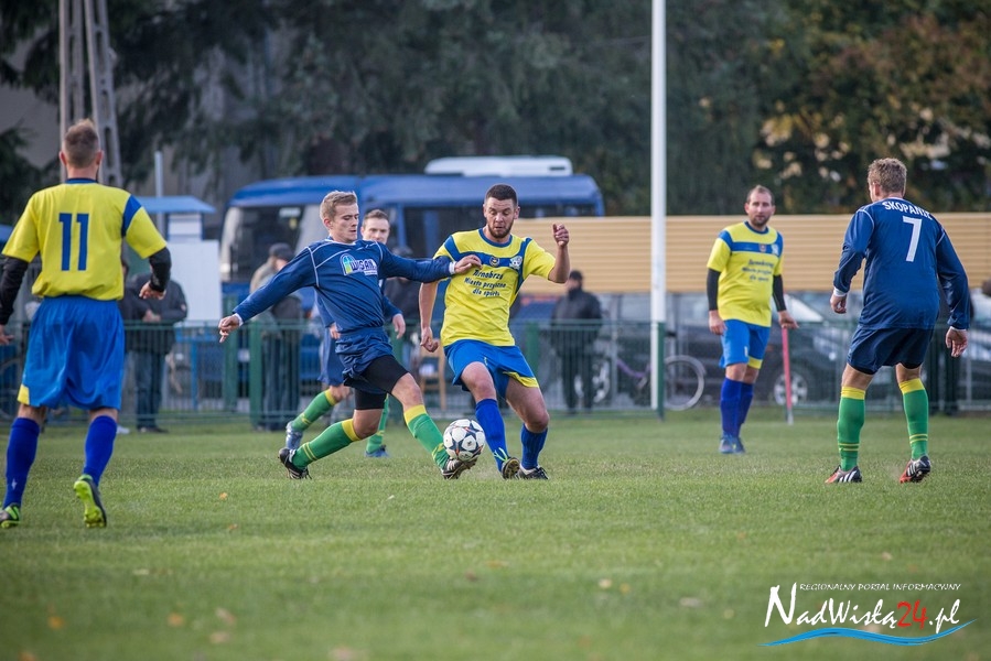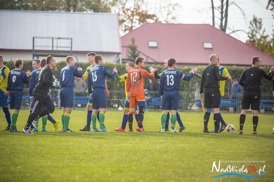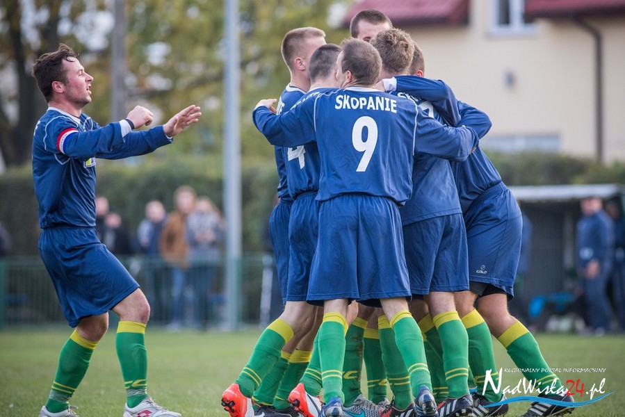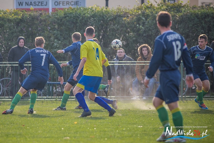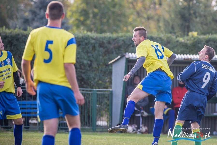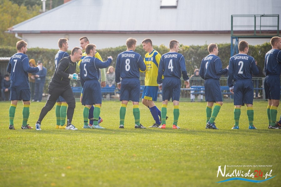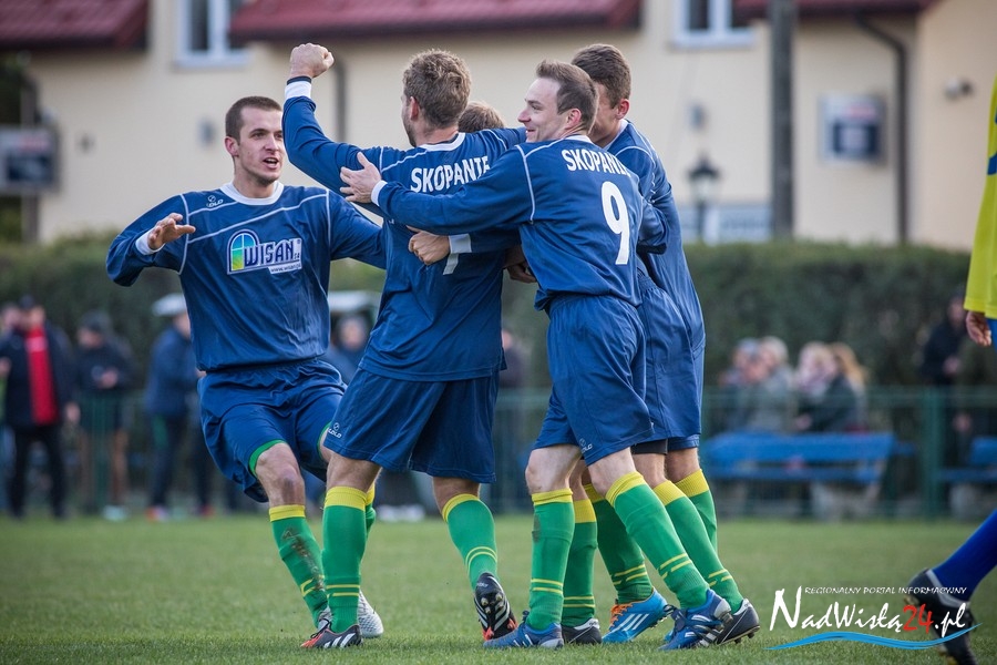 Wynik meczu otworzył w 36 minucie Marcin Serafin, wyprowadzając zespół ze Skopania na prowadzenie. OKS odpowiedział po przerwie, w 53 minucie bramkarza gospodarzy pokonał strzałem głową Kamil Guściora, doprowadzając do wyrównania. W 85 minucie, po strzale Dawida Rzeźwickiego, Adrian Lasota musiał drugi raz w tym meczu skapitulować i to gospodarze mogli cieszyć się z czwartego w tym sezonie zwycięstwa.