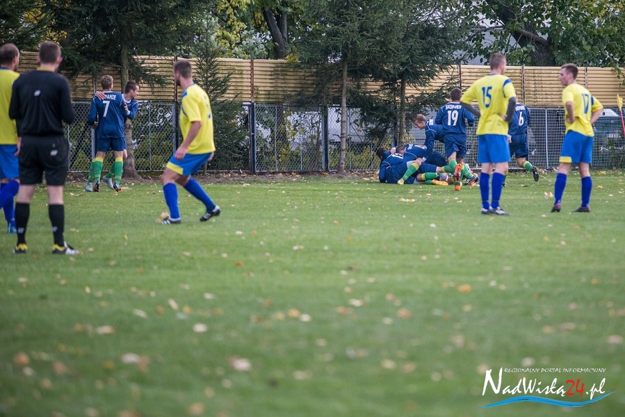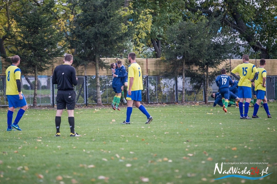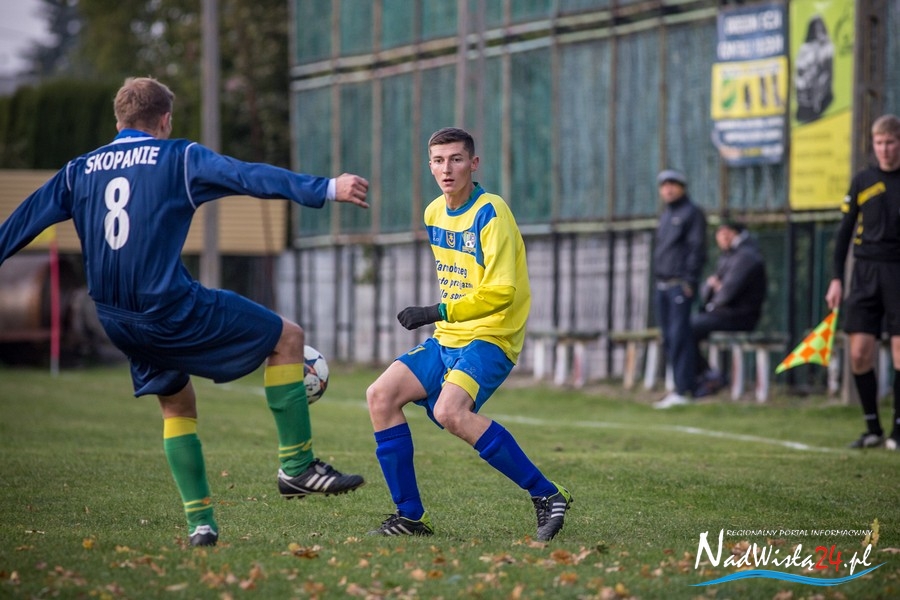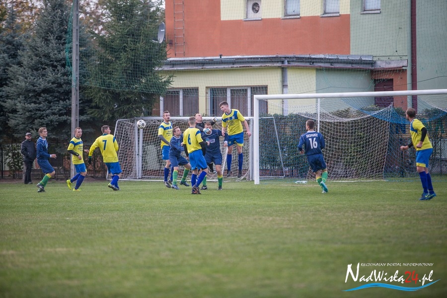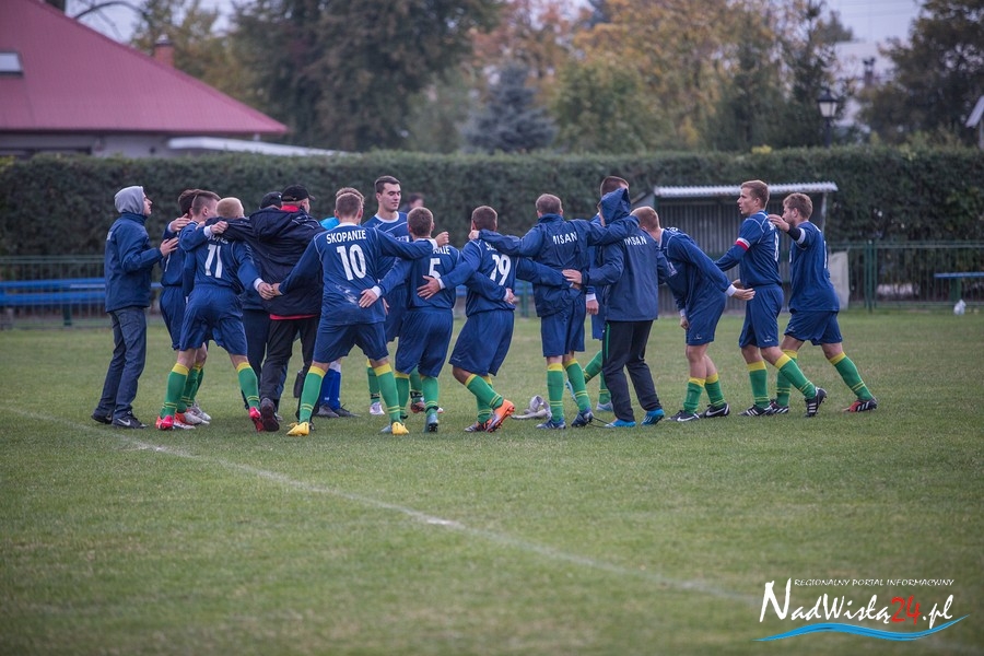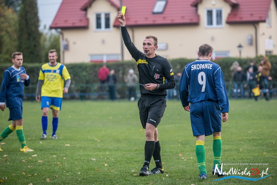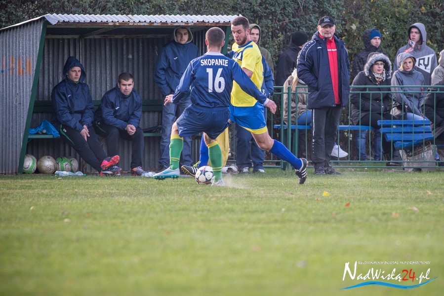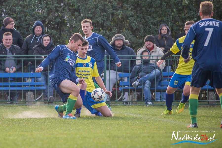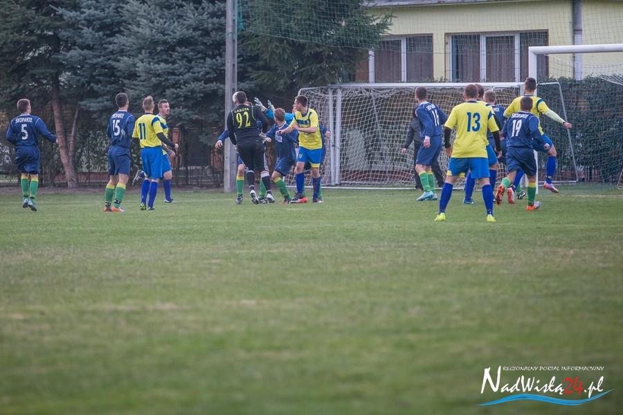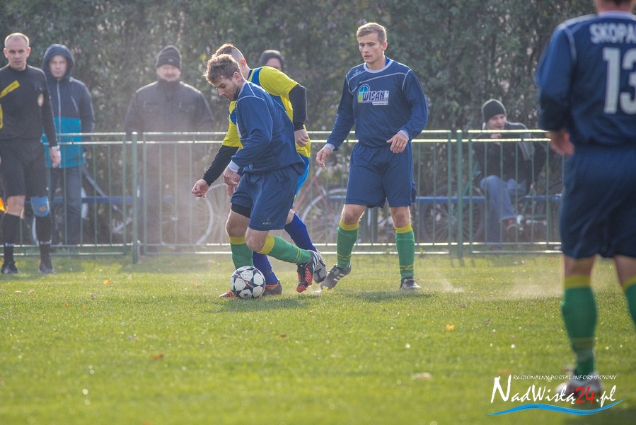 Wynik meczu otworzył w 36 minucie Marcin Serafin, wyprowadzając zespół ze Skopania na prowadzenie. OKS odpowiedział po przerwie, w 53 minucie bramkarza gospodarzy pokonał strzałem głową Kamil Guściora, doprowadzając do wyrównania. W 85 minucie, po strzale Dawida Rzeźwickiego, Adrian Lasota musiał drugi raz w tym meczu skapitulować i to gospodarze mogli cieszyć się z czwartego w tym sezonie zwycięstwa.