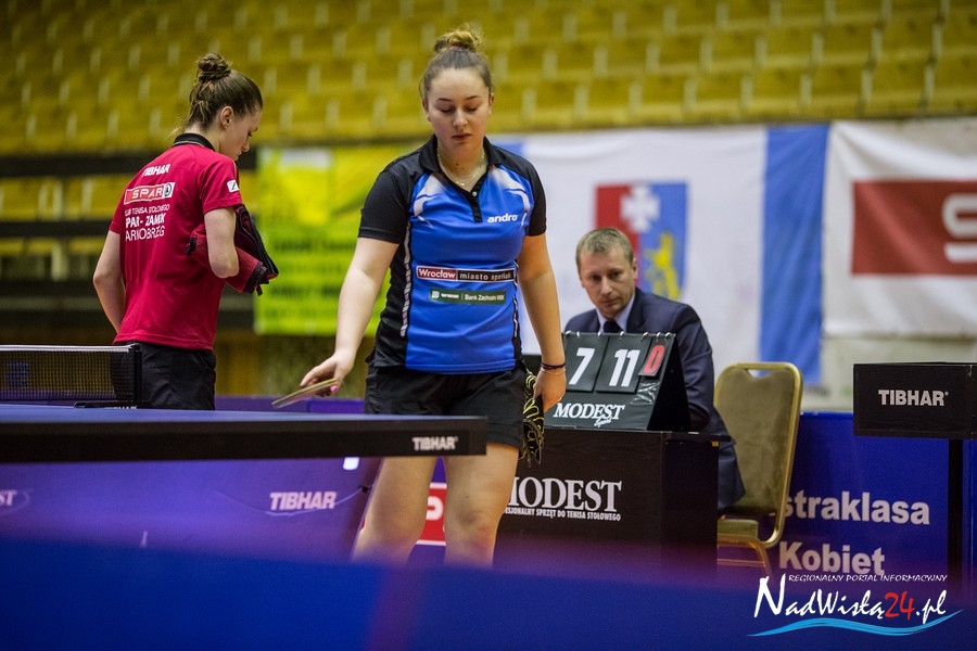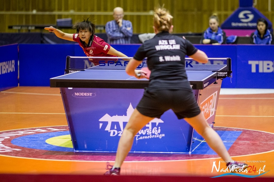 Na początku szybką lekcję gry defensywnej odebrała Li Lu, młodziutka Chinka w barwach wrocławskiej ekipy, która przed dwoma dniami nieoczekiwanie pokonała indywidualną mistrzynię Polski Katarzynę Grzybowską. Jednak na lekcji z grania przeciw obronie najwyraźniej wagarowała, a Li Qian nie miała zamiaru przedłużać jej tortur i po 15 minutach Tarnobrzeg prowadził 1:0.