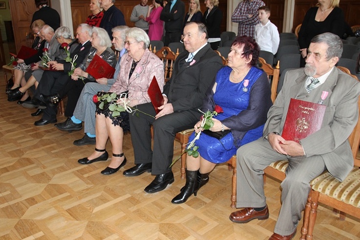 – Dostojni Jubilaci, minęło 50 lat od czasu, kiedy złączeni uczuciem zawarliście związek małżeński i pomimo różnych przeciwności losu przyrzeczenia danego sobie dotrzymaliście. Możliwe to było tylko dlatego, że darzycie się wzajemnym uczuciem i poszanowaniem – mówił wiceprezydent Józef Motyka. – Drodzy Jubilaci gratulacje za chlubne przeżycie tak pięknej, wspólnej drogi życia. Życzę Wam wszystkim długich i pogodnych lat życia. Niech kolejne dni upływają Wam w zdrowiu, niech otacza Was miłość i opieka najbliższych – dodał.