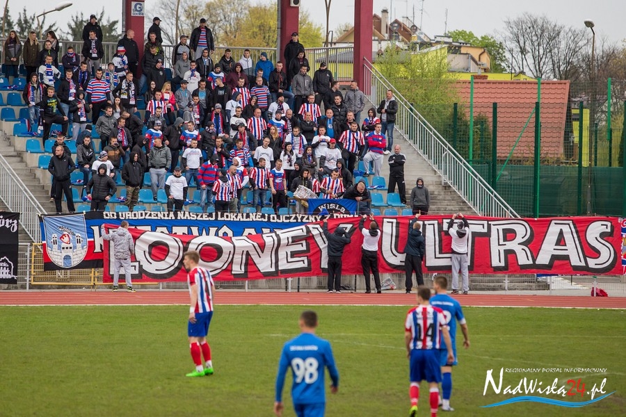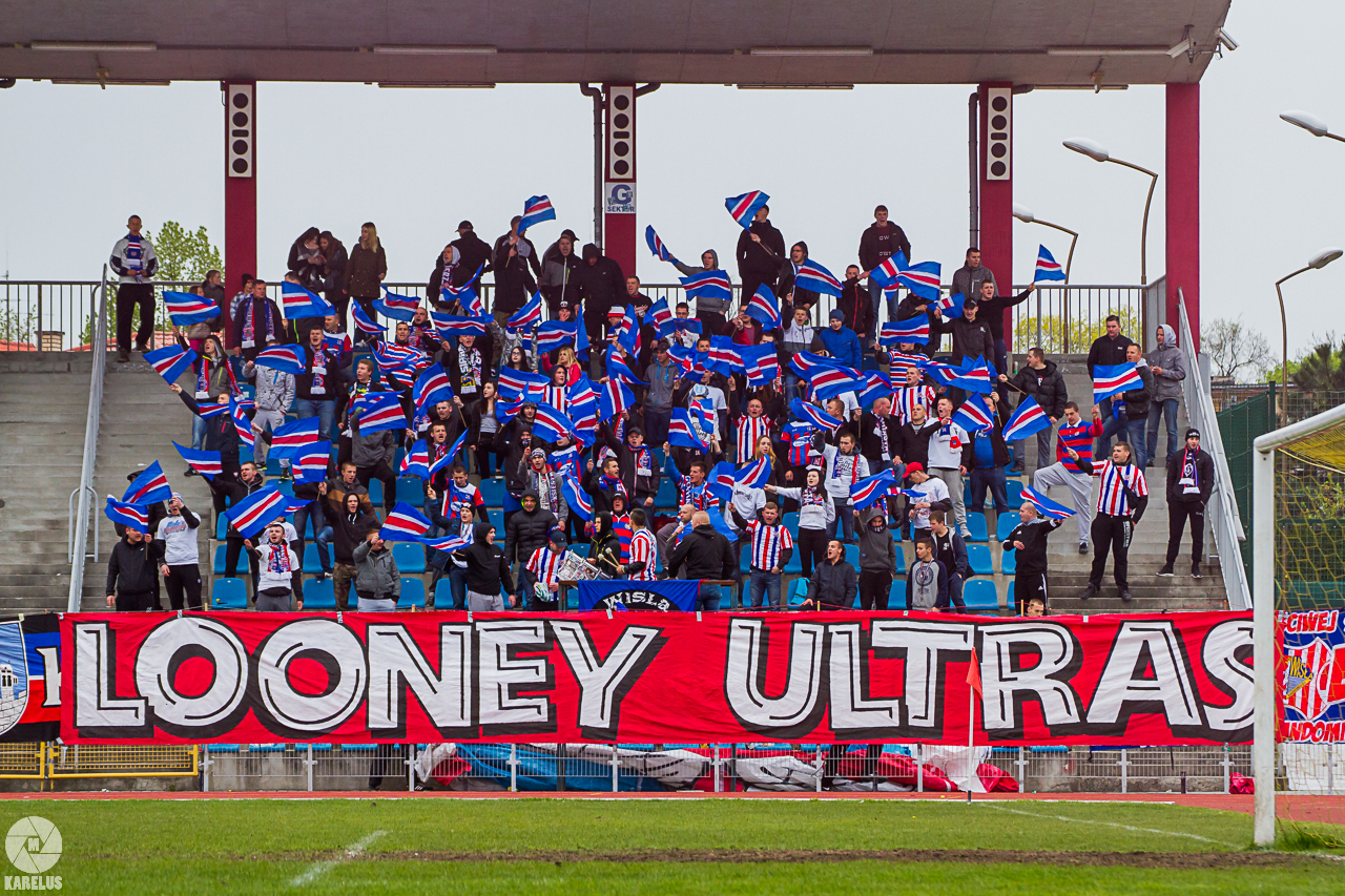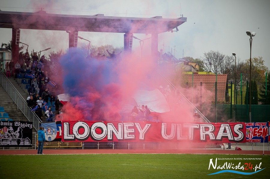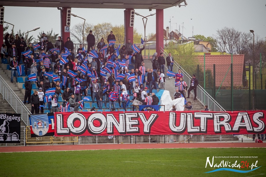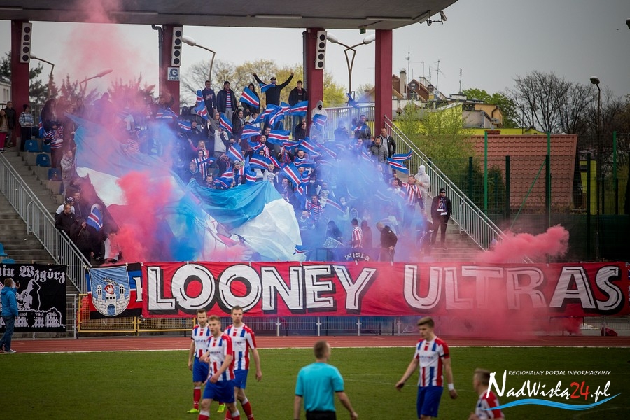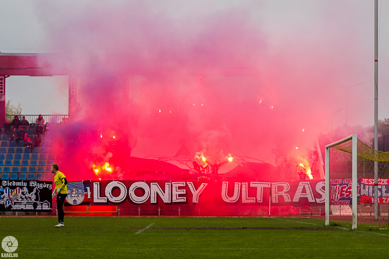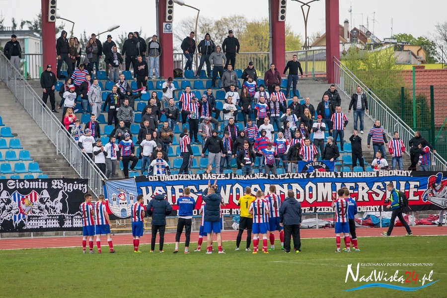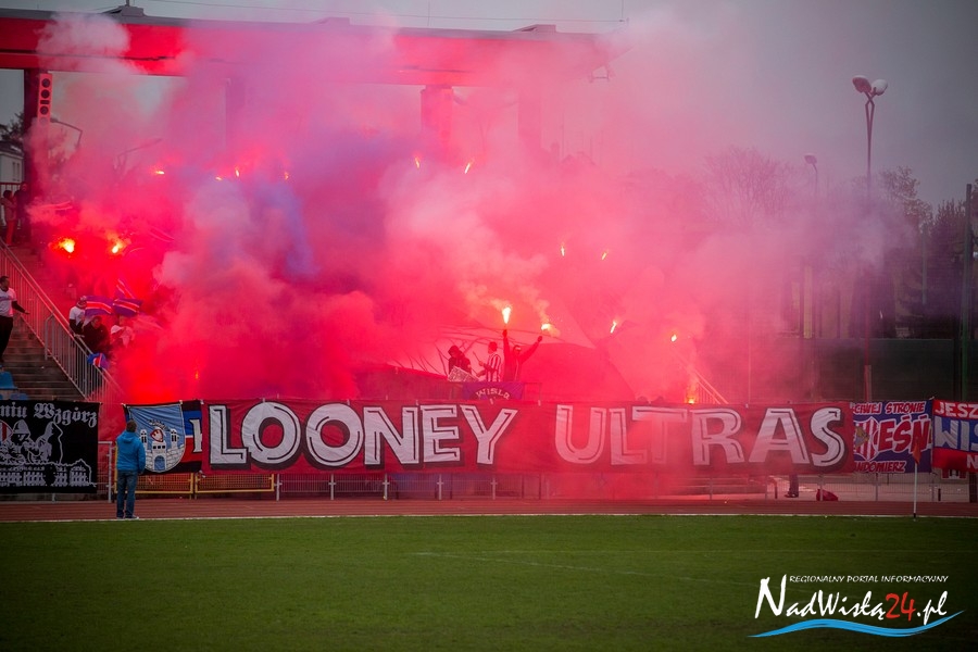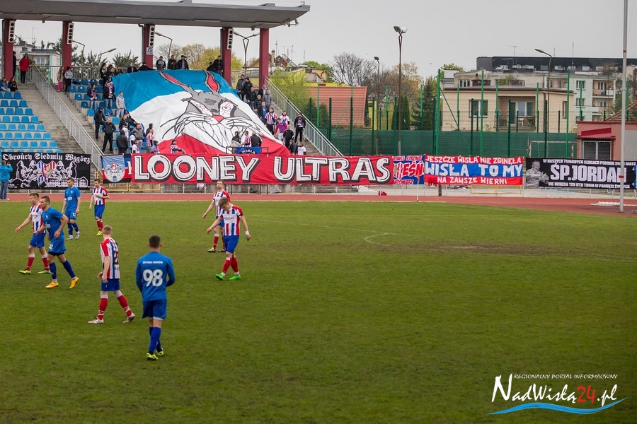Podczas niedzielnego meczu Wisły Sandomierz z Unią Tarnów kibice sandomierskiej drużyny przygotowali efektowną oprawę.