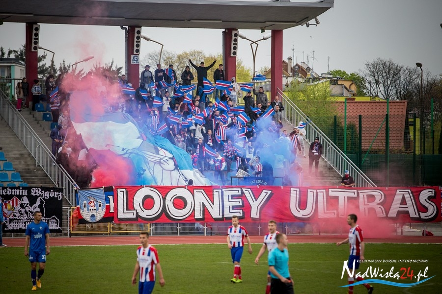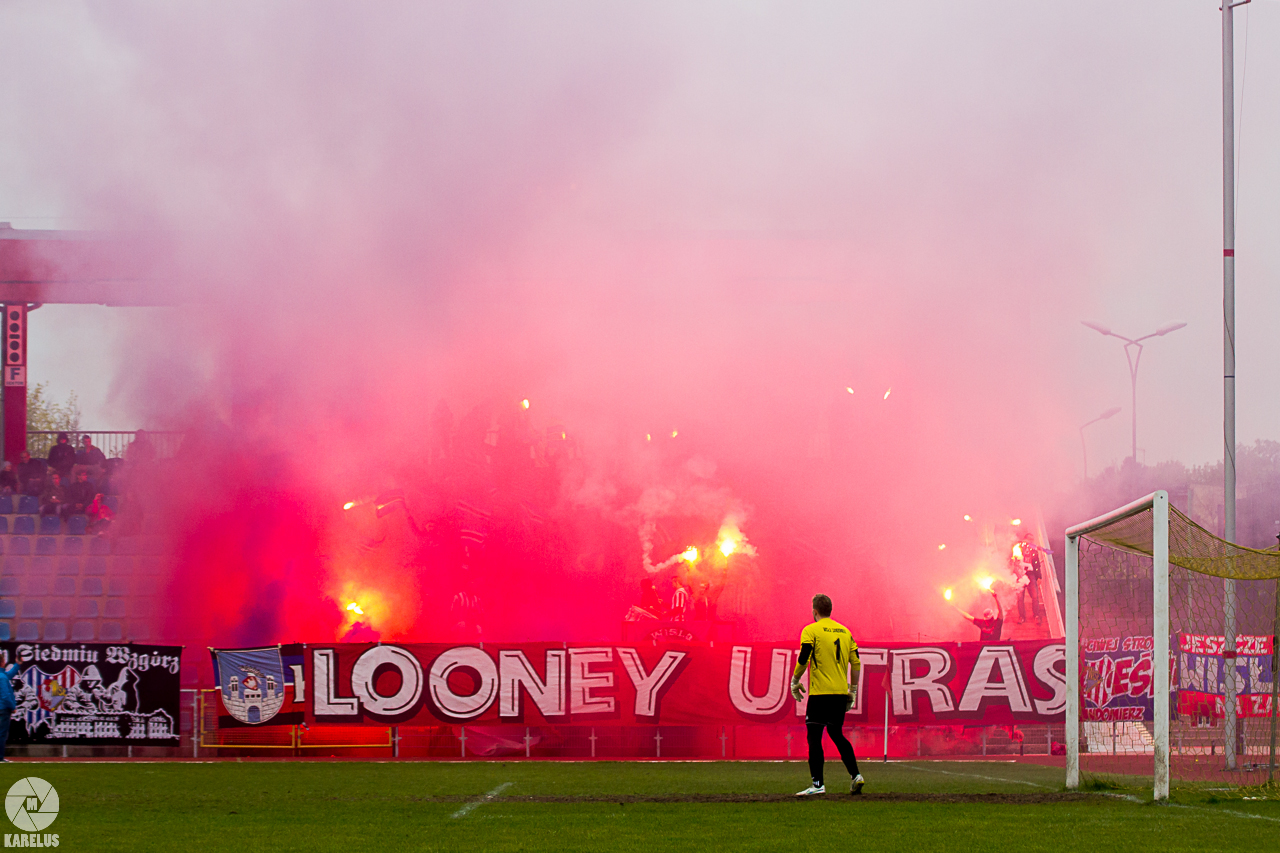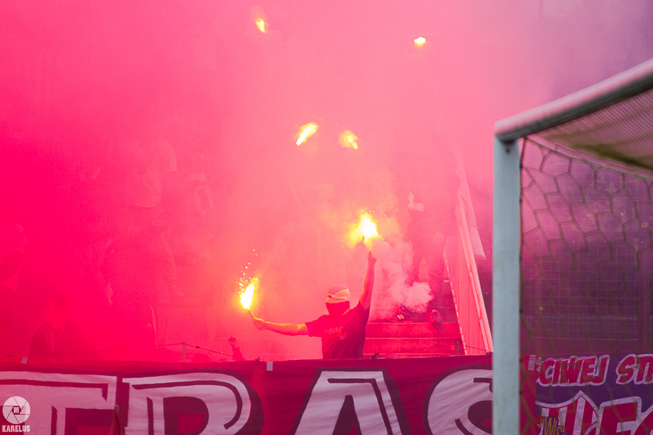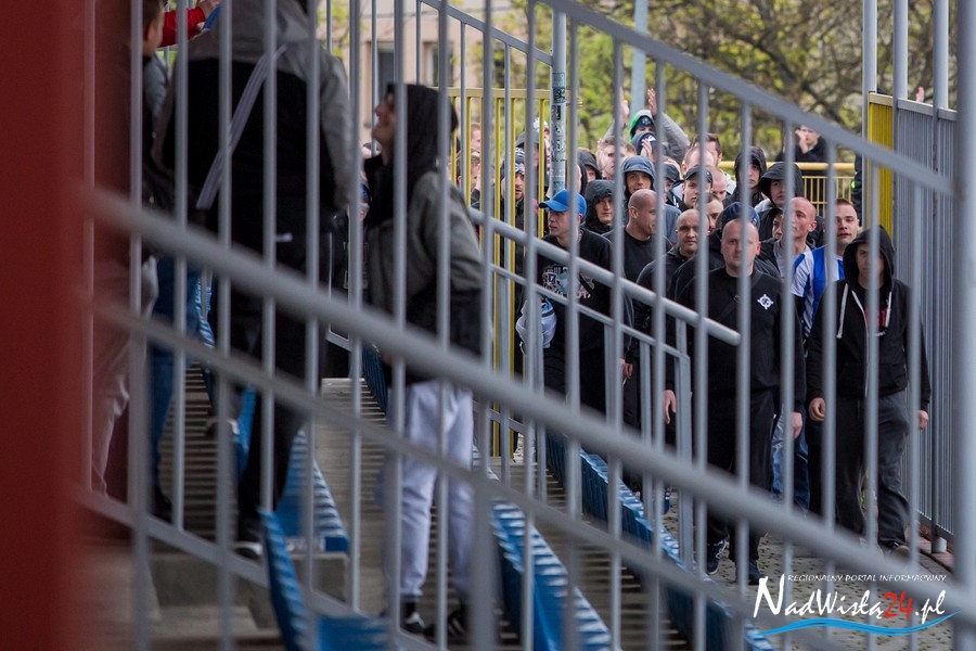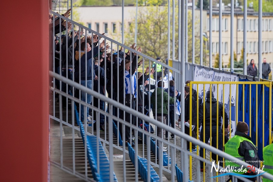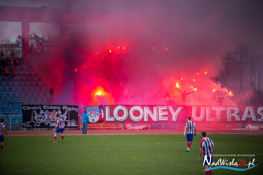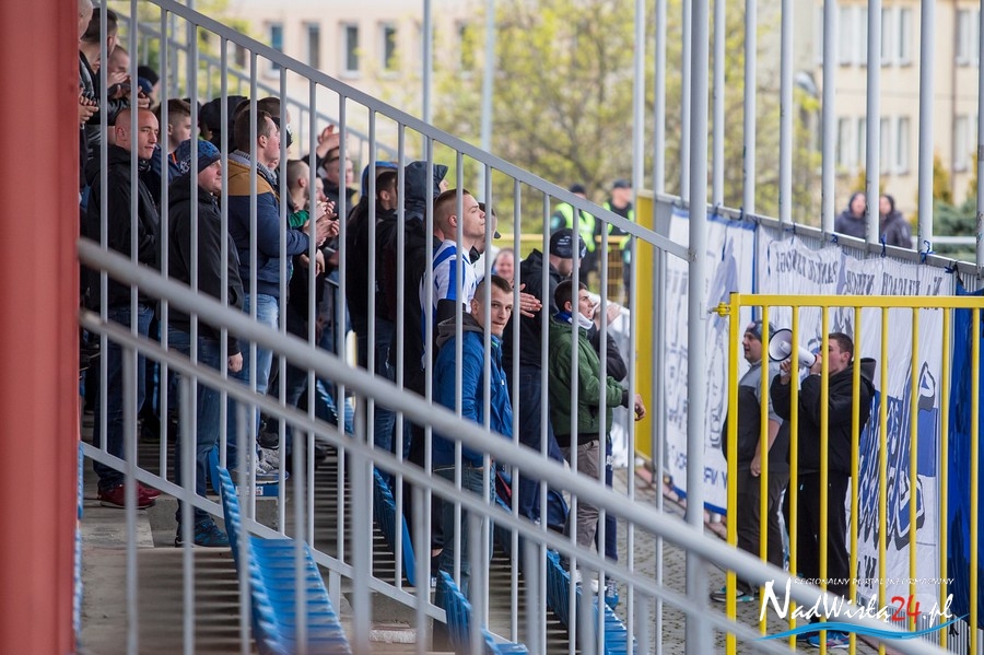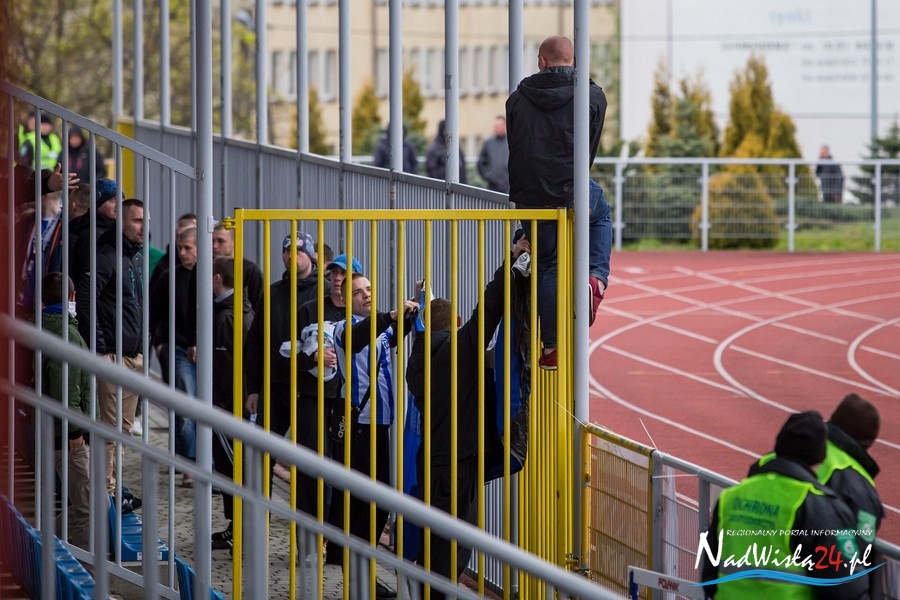 Podczas niedzielnego meczu Wisły Sandomierz z Unią Tarnów kibice sandomierskiej drużyny przygotowali efektowną oprawę.