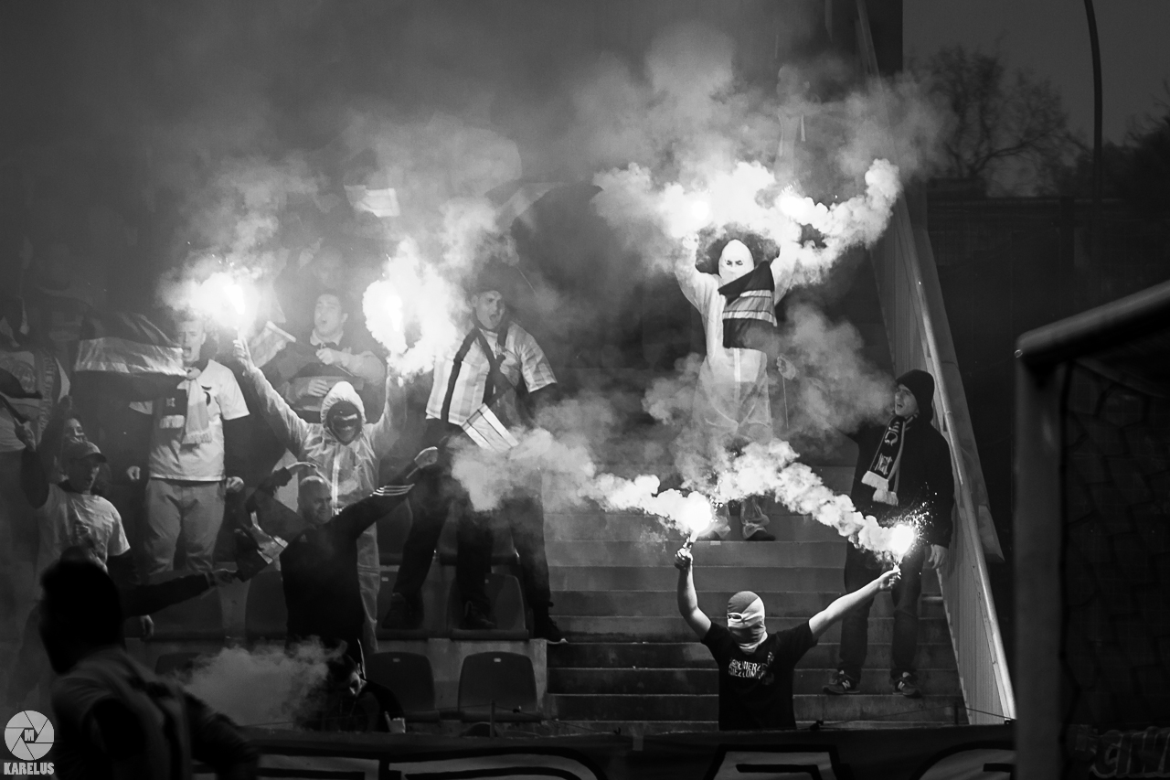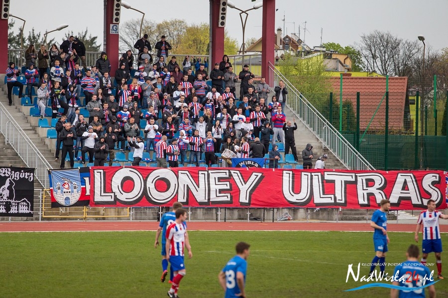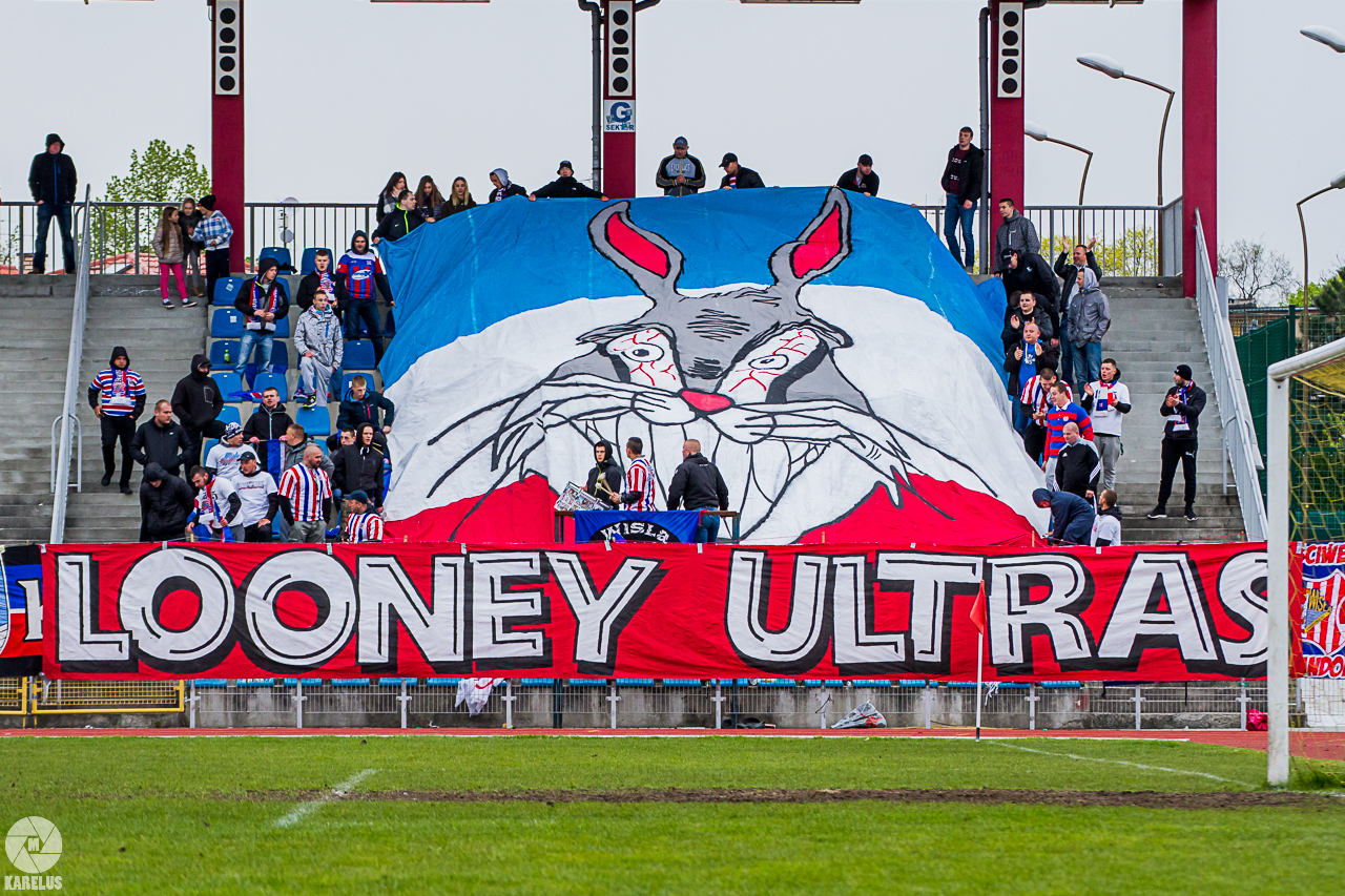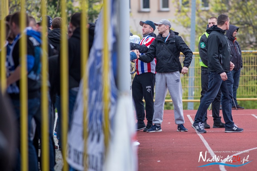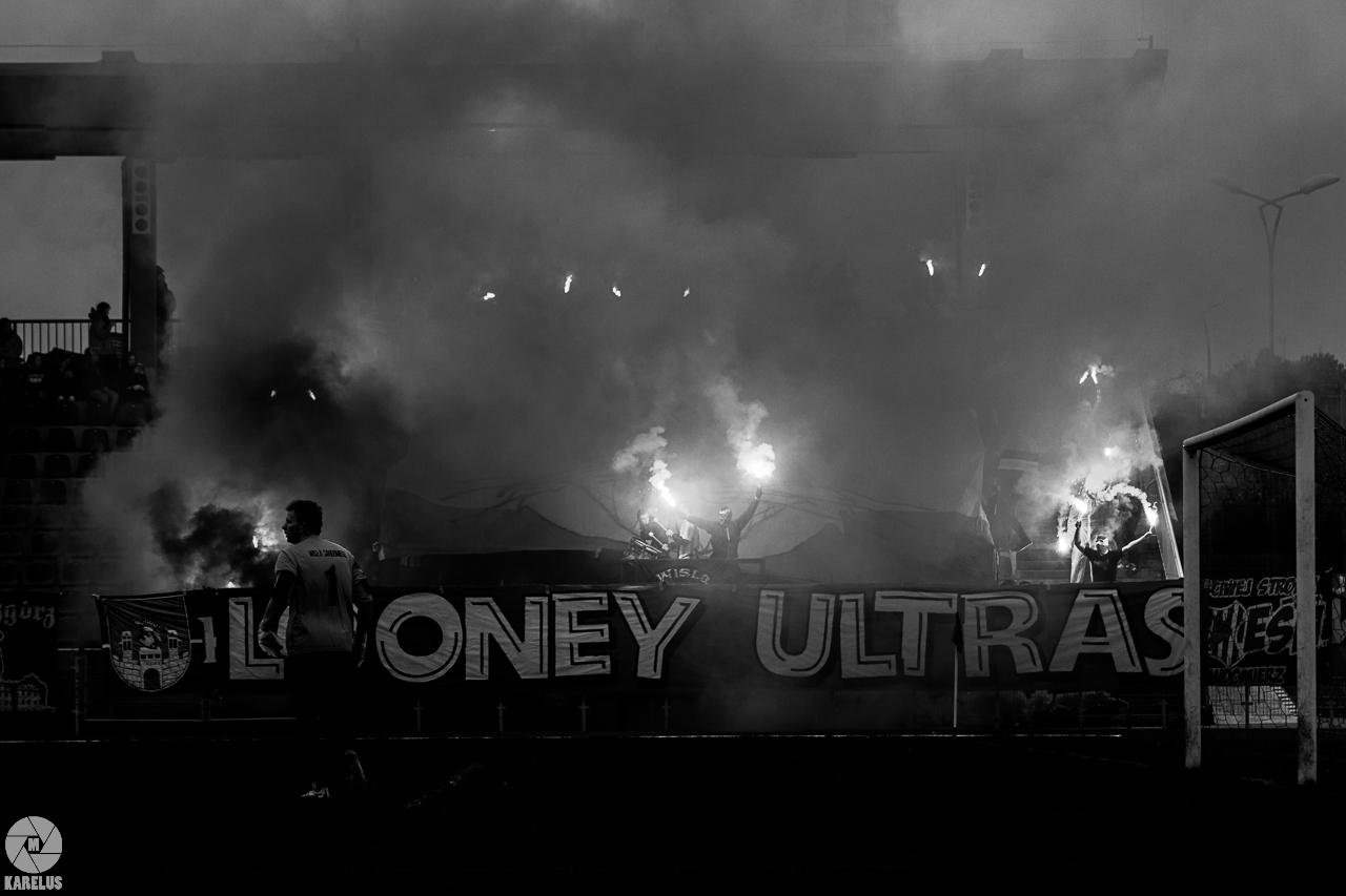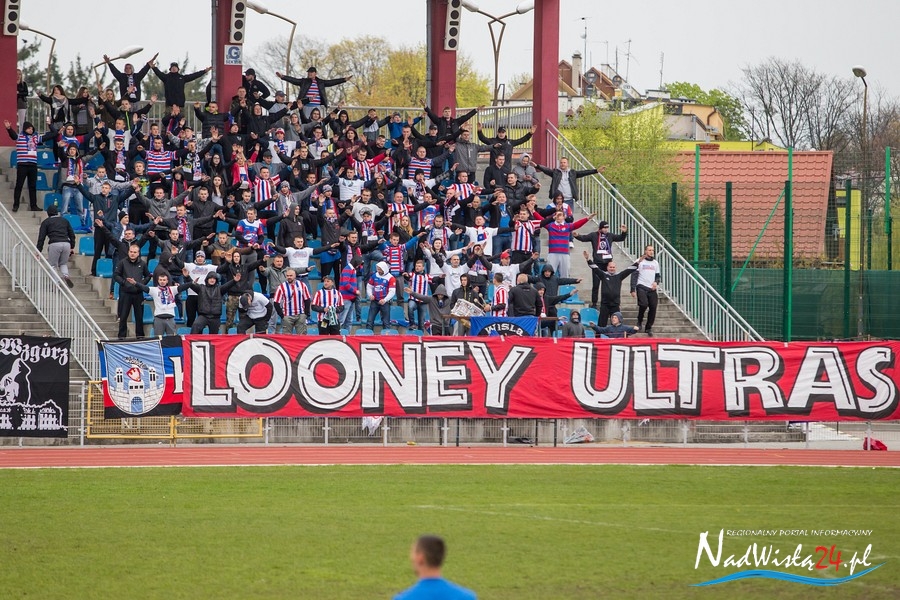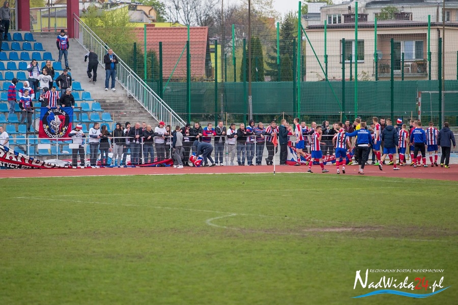 Podczas niedzielnego meczu Wisły Sandomierz z Unią Tarnów kibice sandomierskiej drużyny przygotowali efektowną oprawę.
