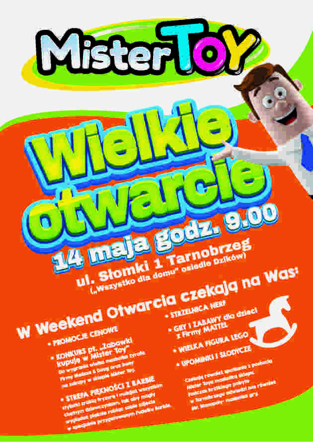 14 maja 2016, swój sklep w Tarnobrzegu przy ul. Jana Słomki 1 osiedle Dzików, otworzy MisterToy – firma specjalizująca się w sprzedaży zabawek i artykułów dla dzieci i młodzieży. W sklepie tym będzie można nabyć również odzież polskiej marki MMDadak.