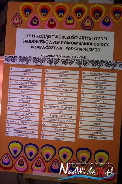 Prawie 500 podopiecznych 47 placówek wzięło udział w 12 edycji przeglądu Twórczości Artystycznej Środowiskowych Domów Samopomocy Województwa Podkarpackiego. Zgodnie z hasłem przeglądu „Na ludowo” występy wokalne i teatralne uczestników warsztatów terapii zajęciowych miały folklorystyczny charakter.