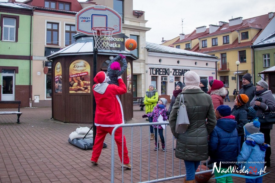 Tym razem dzieci otrzymywały czekoladę w zamian za samodzielnie wykonaną pocztówkę do świętego Mikołaja. Nim jednak pociechy mogły odebrać słodkie upominki, do wspólnej zabawy zachęcała ze sceny Fitneska. Nowością w tym roku były cztery konkurencje sportowe, po wykonaniu których najmłodsi otrzymywali czekoladowego Mikołaja.