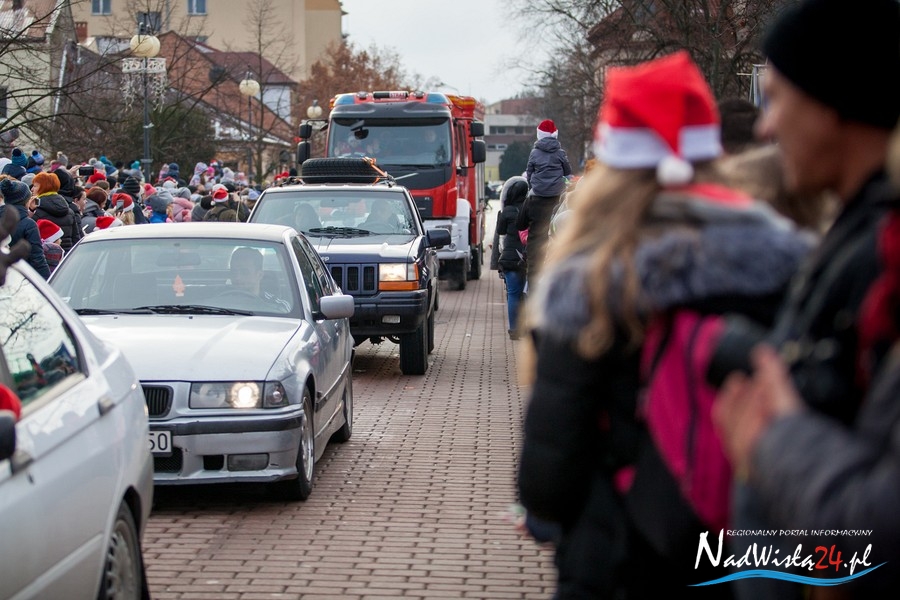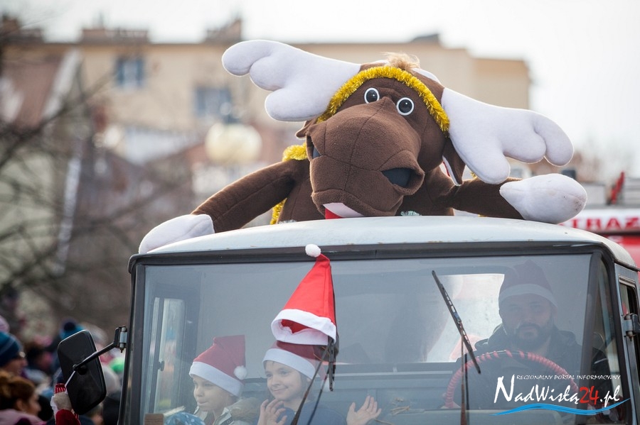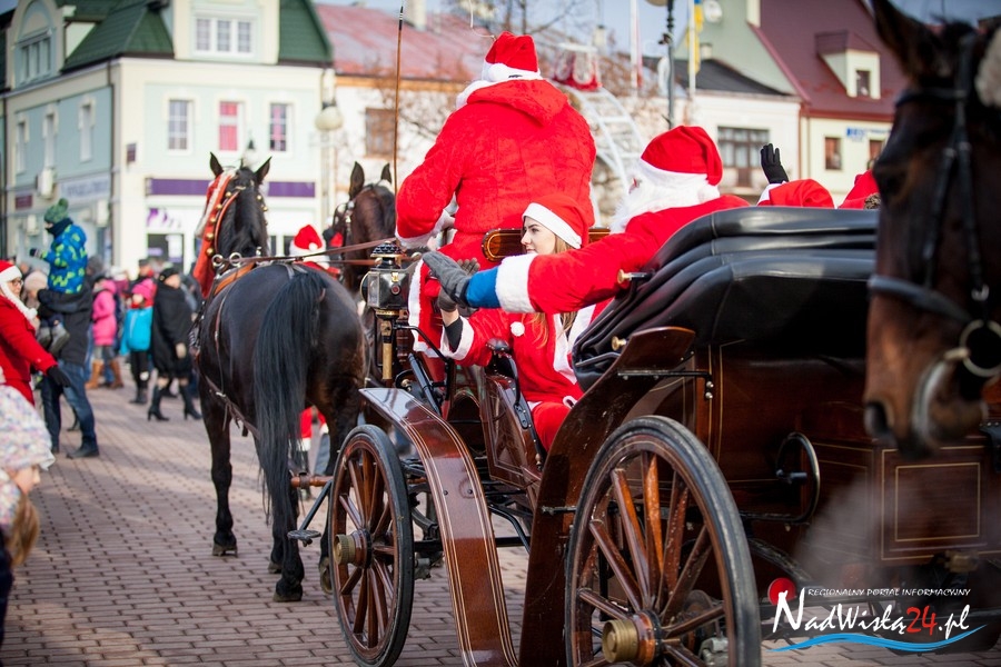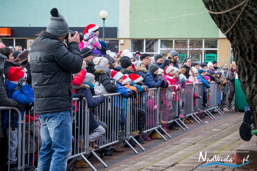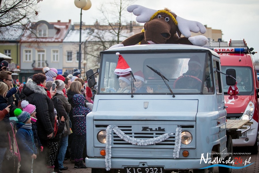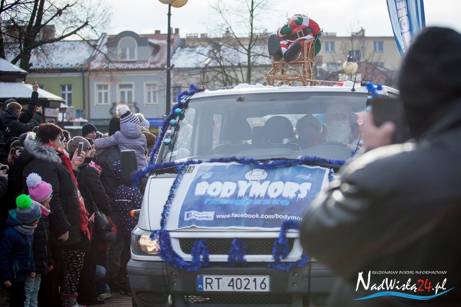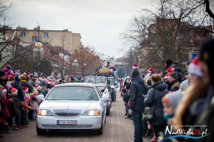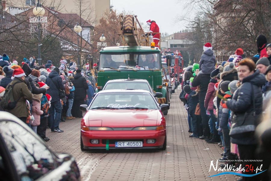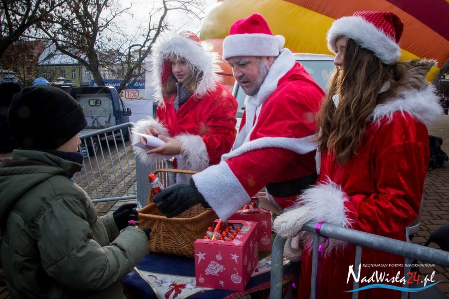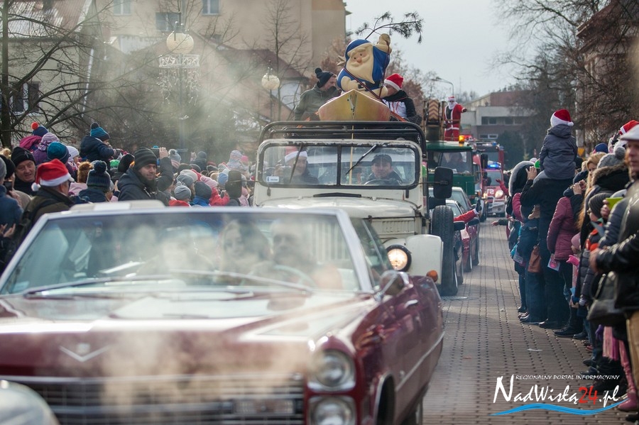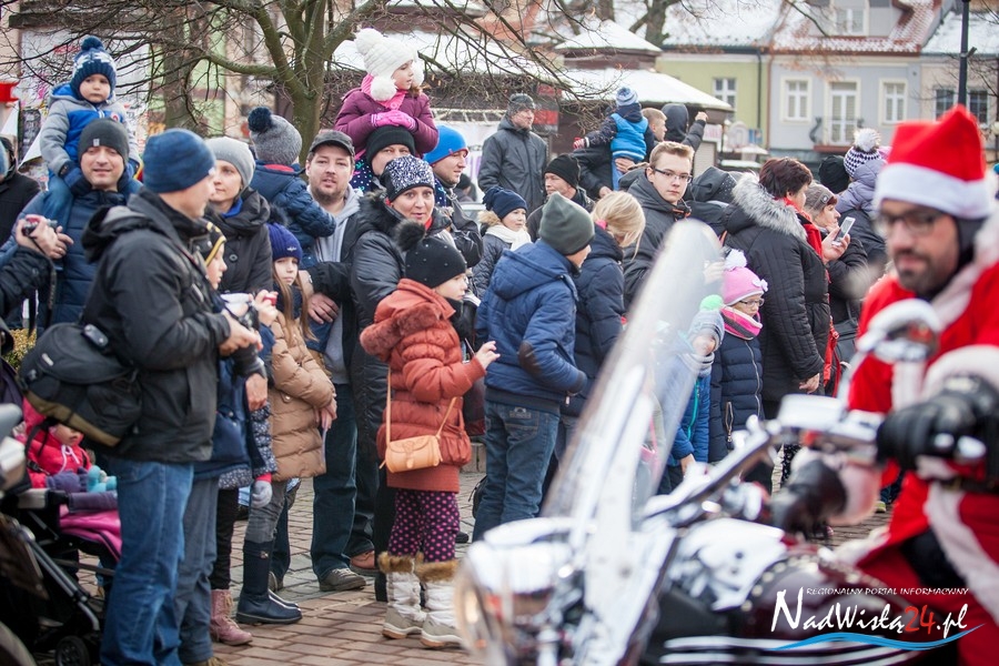 Oczekiwana przez mnóstwo osób kawalkada pojazdów z Mikołajami i ich pomocnikami wjechała na rynek po godzinie 12. Jak co roku, było barwnie, głośno i efektownie. Tym razem pogoda dopisała i w górę, ku uciesze najmłodszych, poszybowały dwa balony. Dorośli mogli tego dnia nabyć świąteczne drobiazgi i nie tylko oferowane przez kilkudziesięciu wystawców, w ramach II Kiermaszu Mikołajkowego.