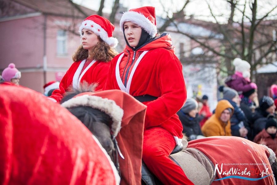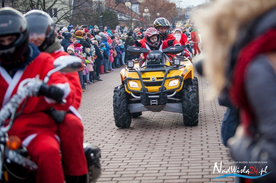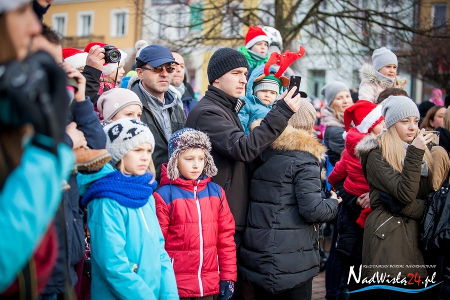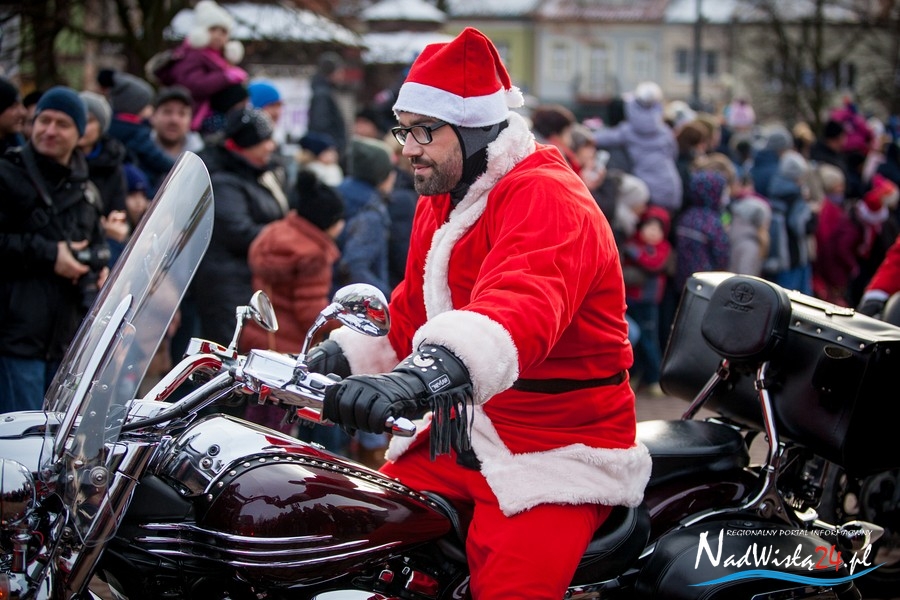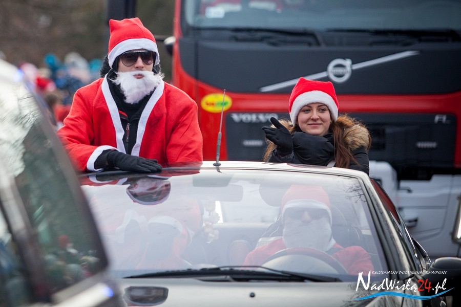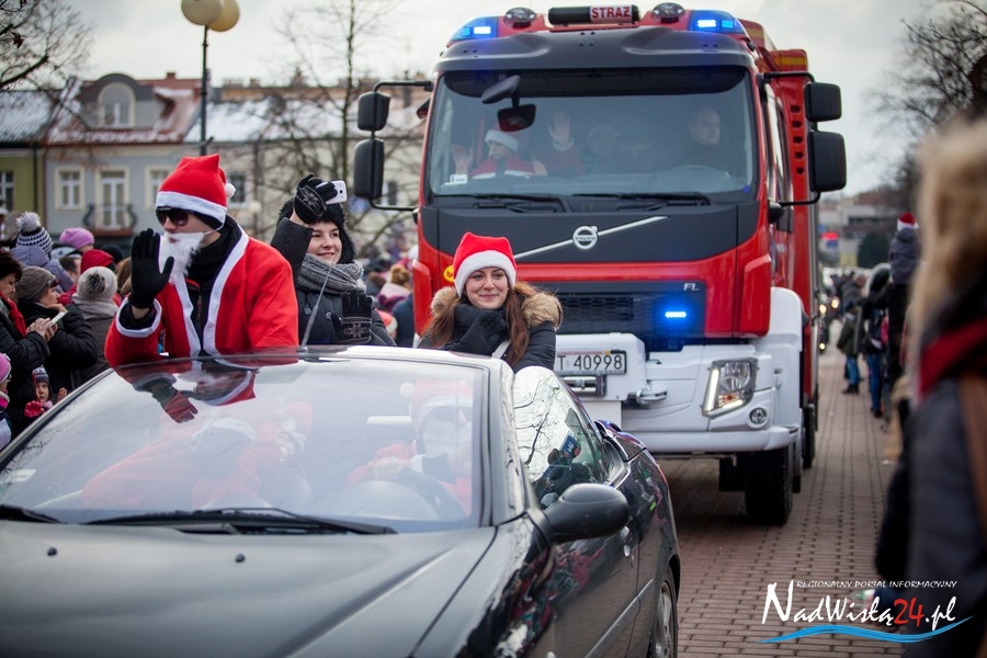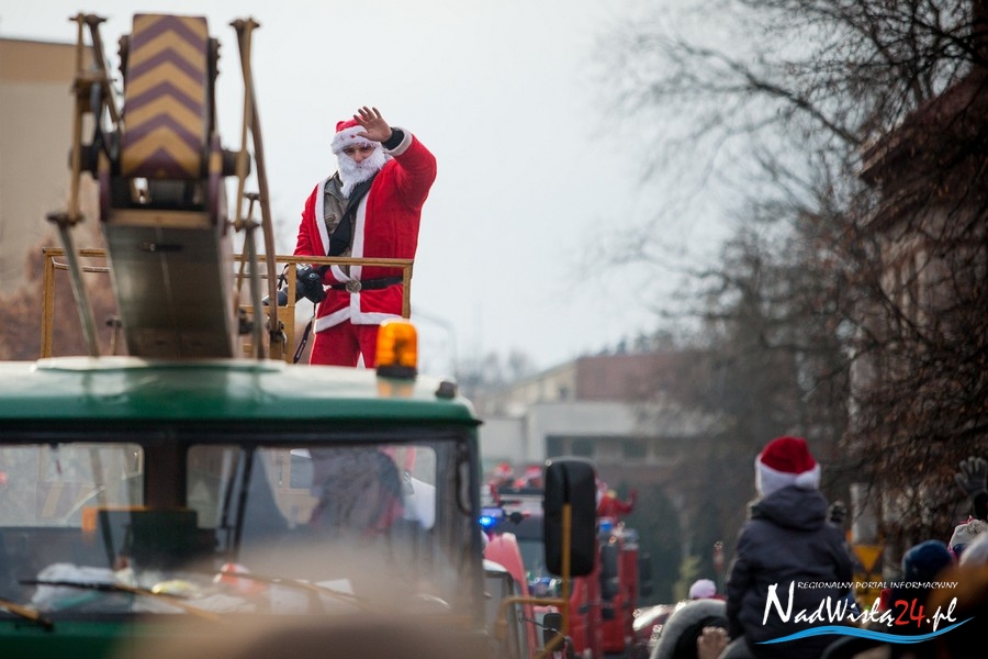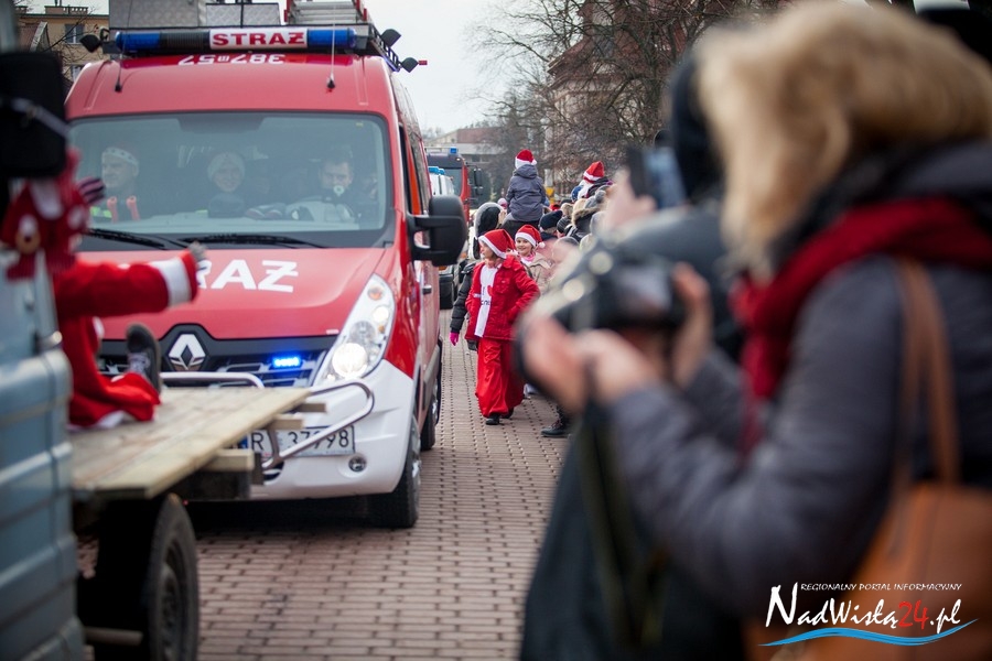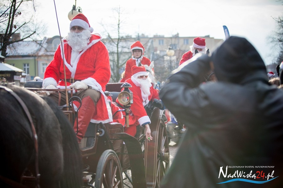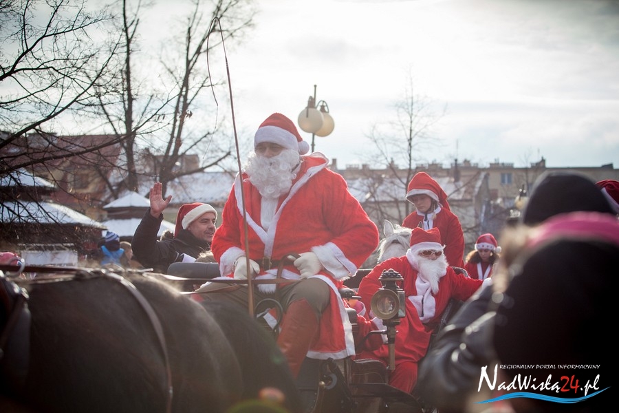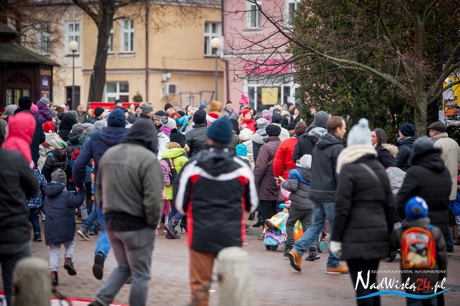 Oczekiwana przez mnóstwo osób kawalkada pojazdów z Mikołajami i ich pomocnikami wjechała na rynek po godzinie 12. Jak co roku, było barwnie, głośno i efektownie. Tym razem pogoda dopisała i w górę, ku uciesze najmłodszych, poszybowały dwa balony. Dorośli mogli tego dnia nabyć świąteczne drobiazgi i nie tylko oferowane przez kilkudziesięciu wystawców, w ramach II Kiermaszu Mikołajkowego.