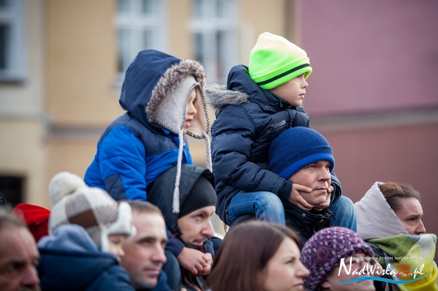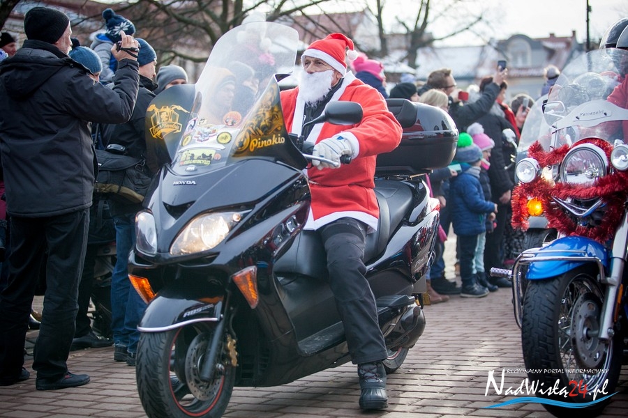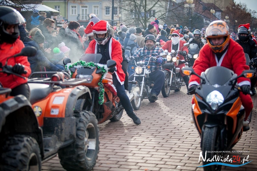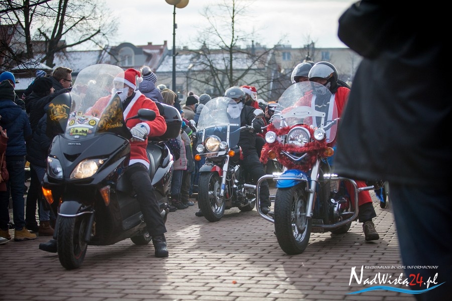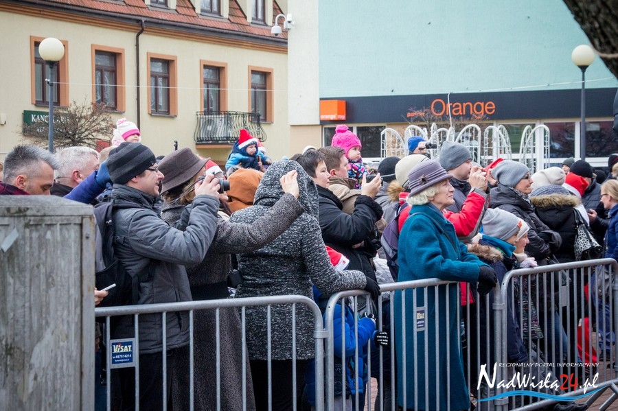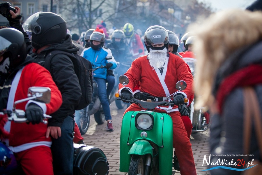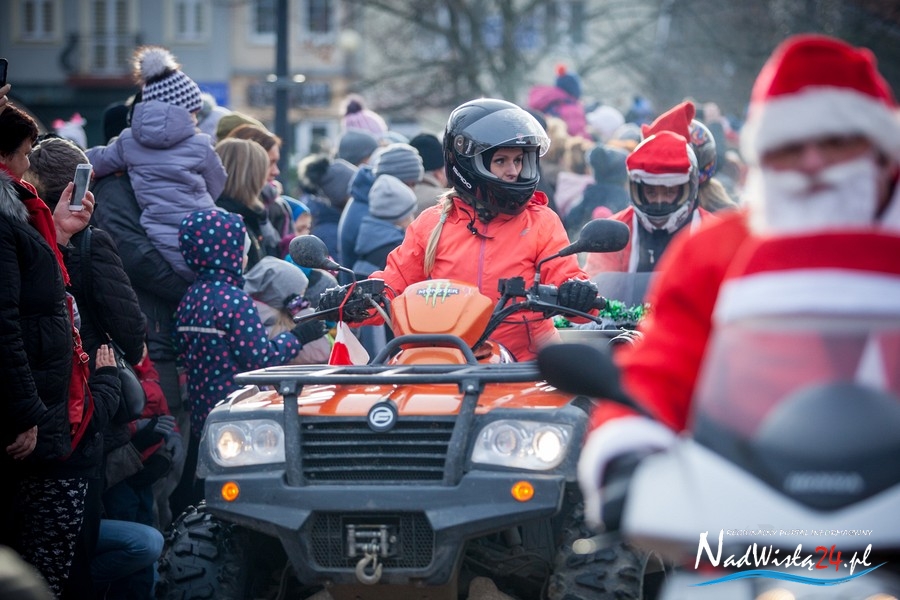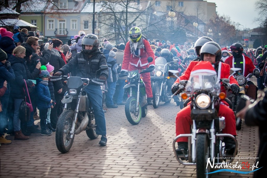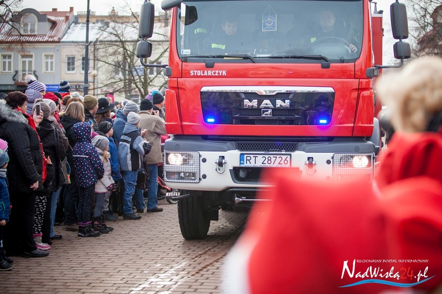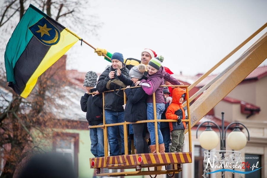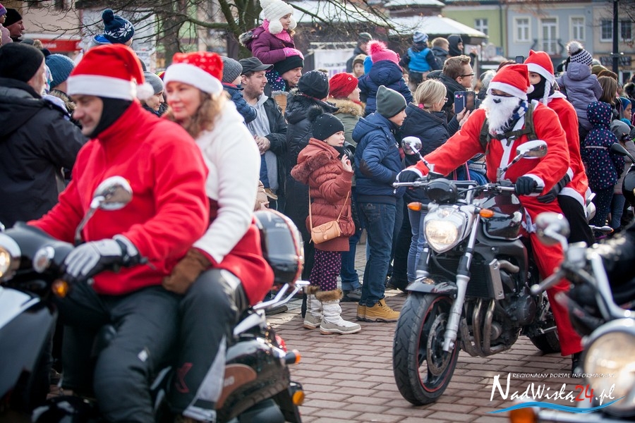 Oczekiwana przez mnóstwo osób kawalkada pojazdów z Mikołajami i ich pomocnikami wjechała na rynek po godzinie 12. Jak co roku, było barwnie, głośno i efektownie. Tym razem pogoda dopisała i w górę, ku uciesze najmłodszych, poszybowały dwa balony. Dorośli mogli tego dnia nabyć świąteczne drobiazgi i nie tylko oferowane przez kilkudziesięciu wystawców, w ramach II Kiermaszu Mikołajkowego.