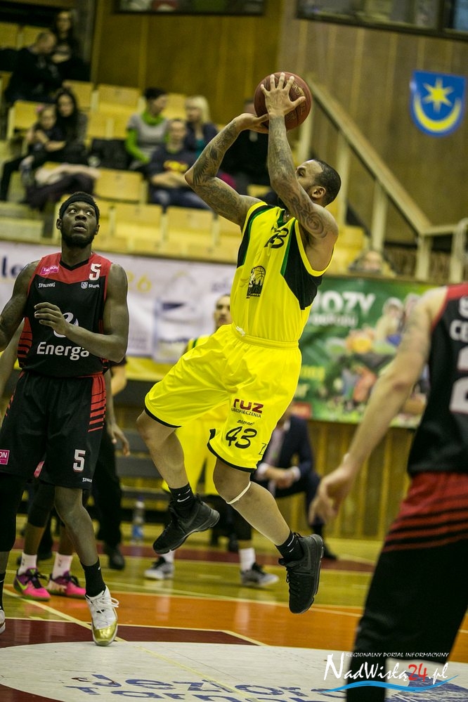 Najlepszym zawodnikiem gości był Chavaughn Lewis z 16 punktami i sześcioma asystami. Po 13 punktów dodali Marcus Ginyard i Jarosław Mokros. W Siarce wyróżniał się Travis Releford z 24 punktami.