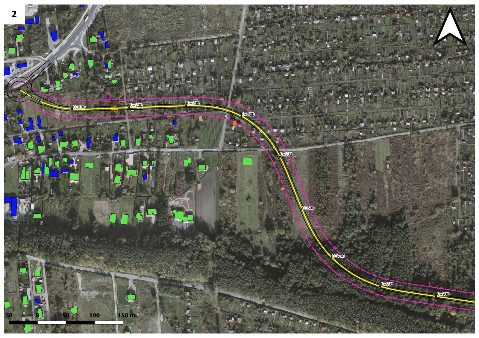 Przypomnijmy, do dalszych prac projektowych zatwierdzony został piąty wariant przebiegu obwodnicy. Wariant ten przewiduje lokalizację początkowego odcinka obwodnicy oraz miejsce jej włączenia w ul. Sikorskiego zgodnie z wariantem W3. Dalej droga biegnie częściowo przez tereny zabudowy jednorodzinnej i ogrodów działkowych, krzyżuje się z ul. Gruntową oraz ul. Orła i kieruje na południe poprzez tereny rolne, omijając duży kompleks ogrodów działkowych. Dalszy przebieg drogi nawiązuje do trasy zaproponowanej w wariancie W4 tj. poprzez tereny wzdłuż ul. 12 Października na zachód, następnie przez ogrody działkowe zlokalizowane w okolicy garaży na Kamionce i dalej kieruje się na północ wzdłuż torów kolejowych.