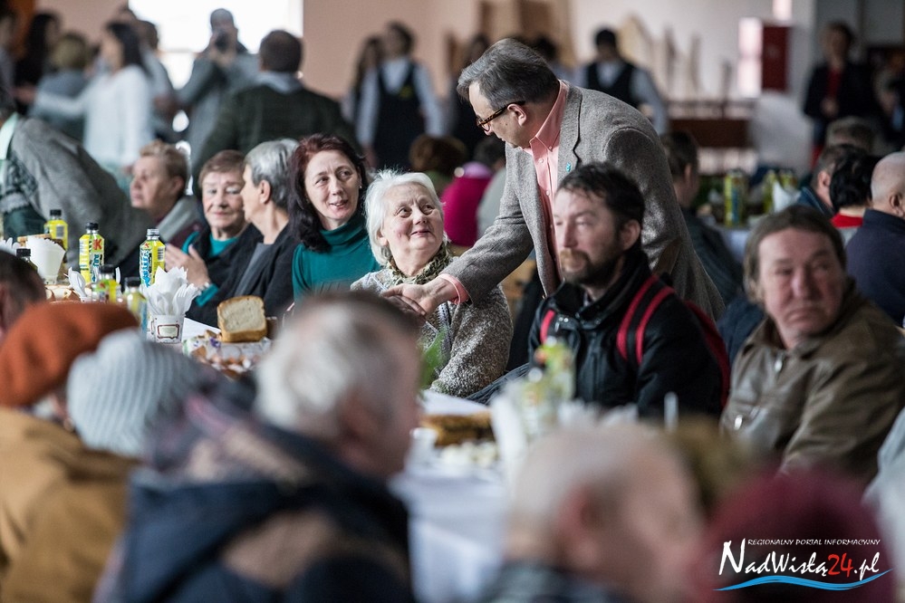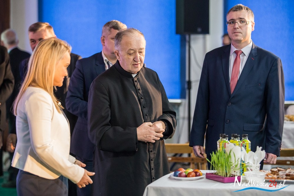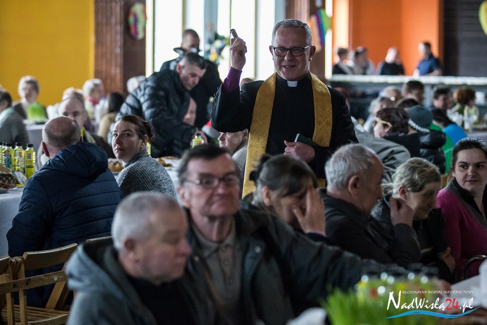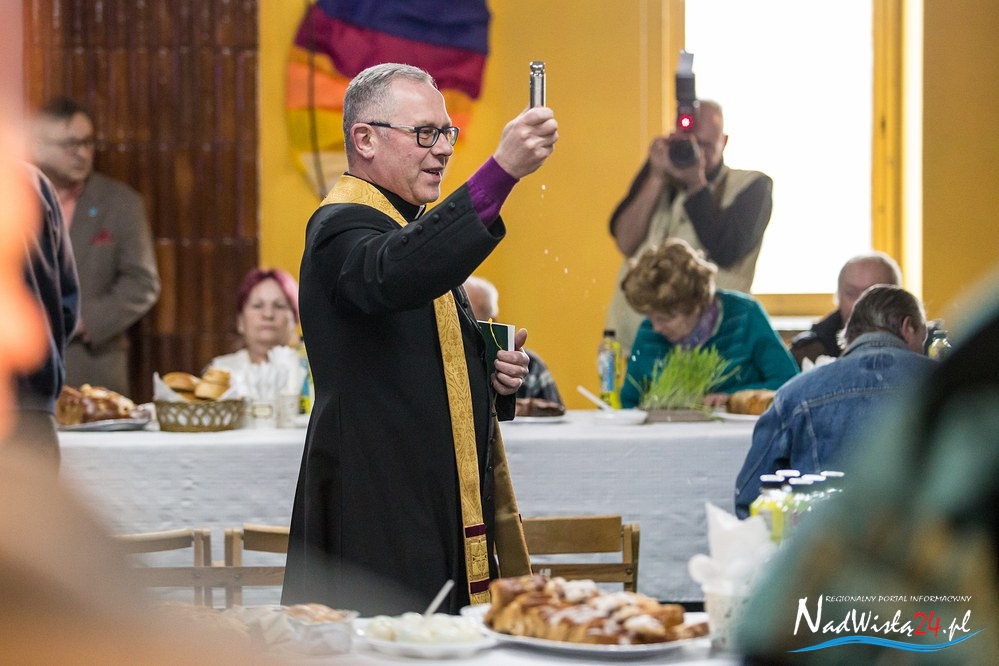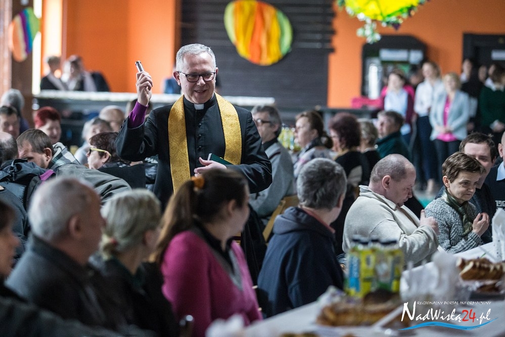 Świąteczne życzenia mieszkańcom miasta złożyli p.o. prezydenta Kamil Kalinka oraz ksiądz dziekan Adam Marek, który dokonał również poświęcenia pokarmów. Świąteczny posiłek dla 200 osób przygotowała spółdzielnia Konar.